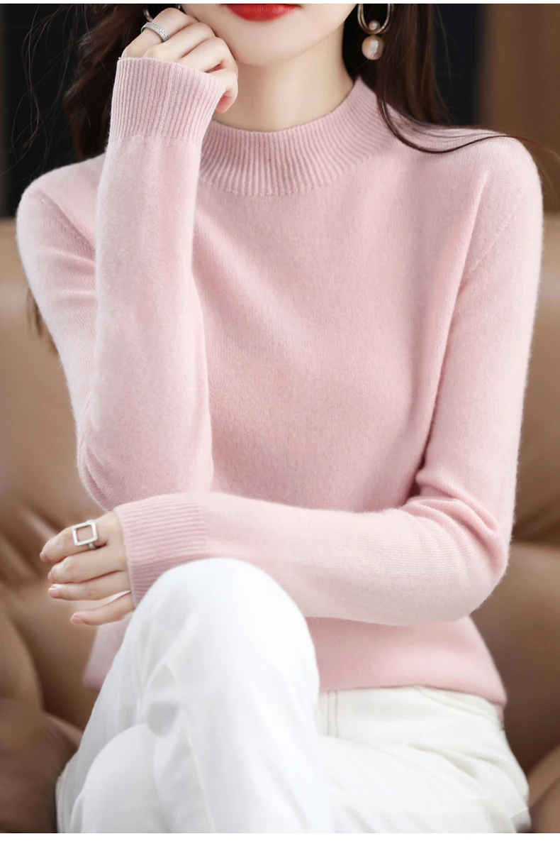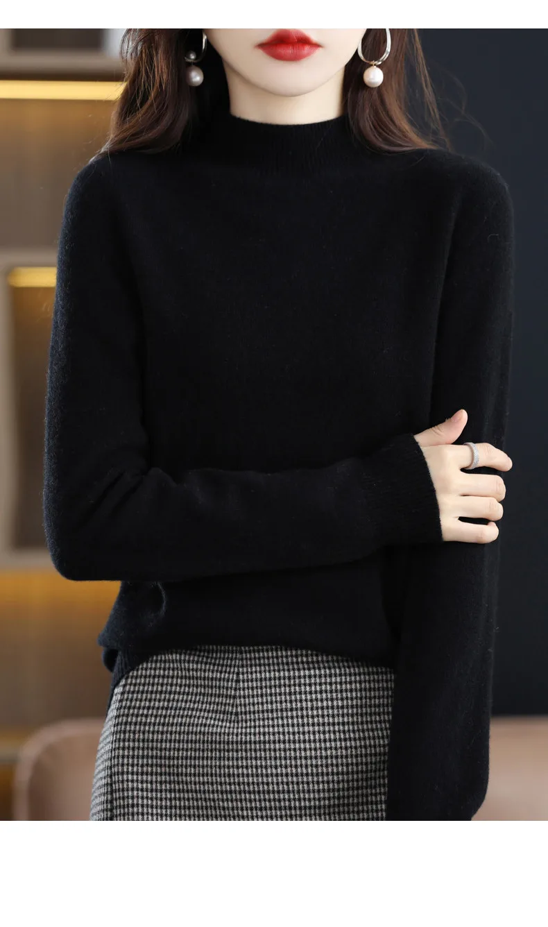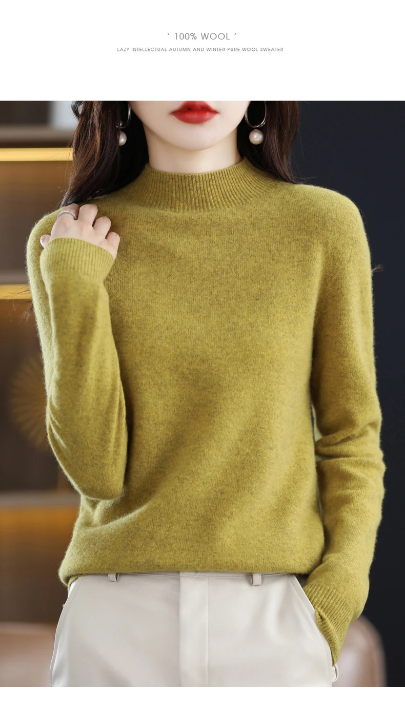 100% Pure Wool Half-neck Pullover In Autumn And Winter New Cashmere Sweater Women's Casual Knit Top Women's Coat 19 Colors
