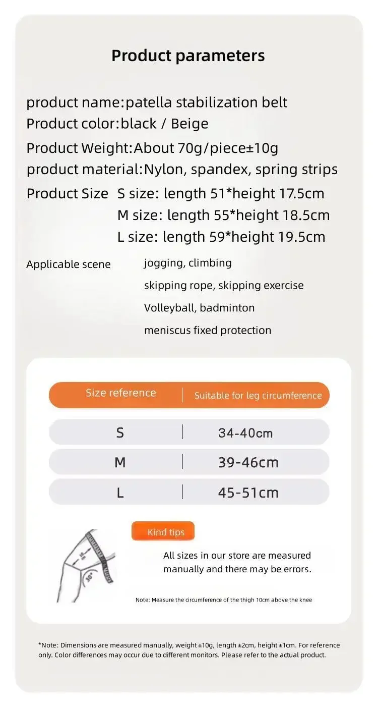 Size: Measure the thigh circumference 10cm above your kneecap.