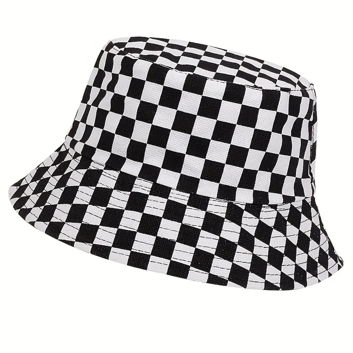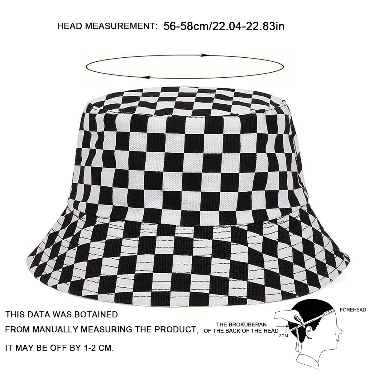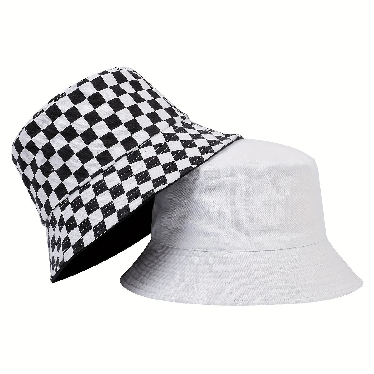 1piece Unisex ack White Grid Reversible Bucket Hat Outdoor Sunscreen Leisure Hat Spring Autumn Travel Tourism Beach Vacation