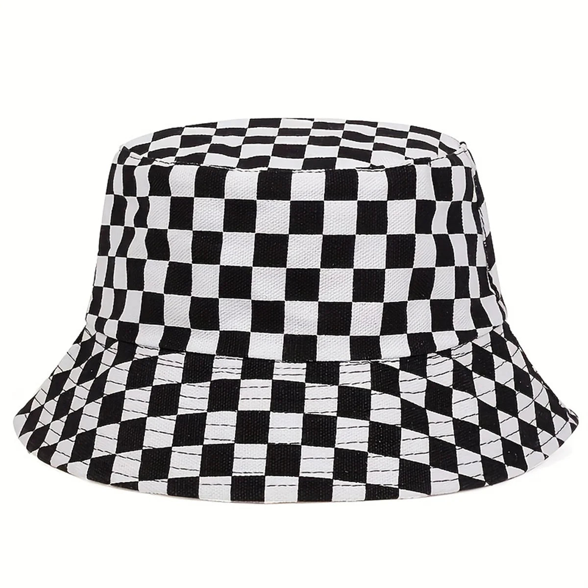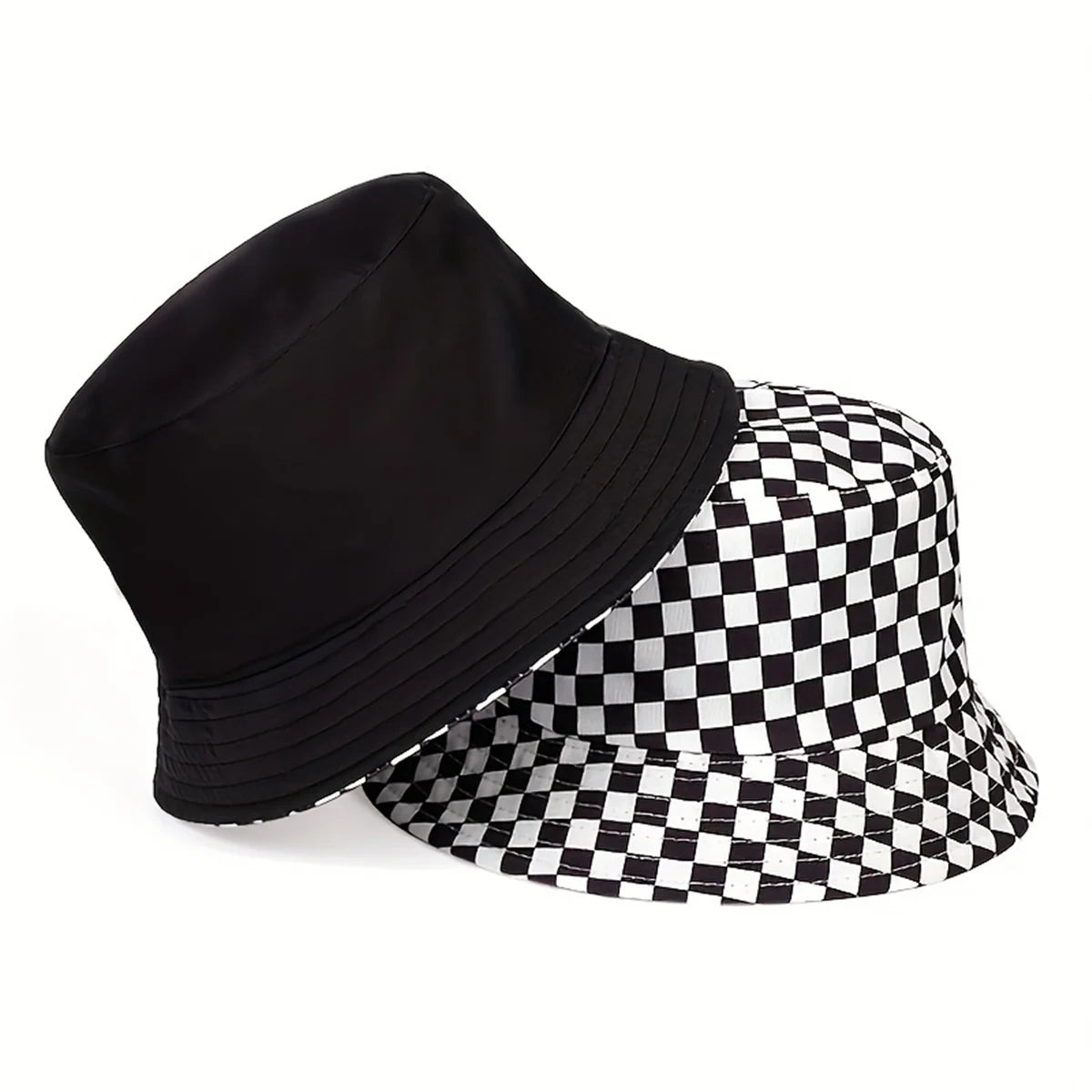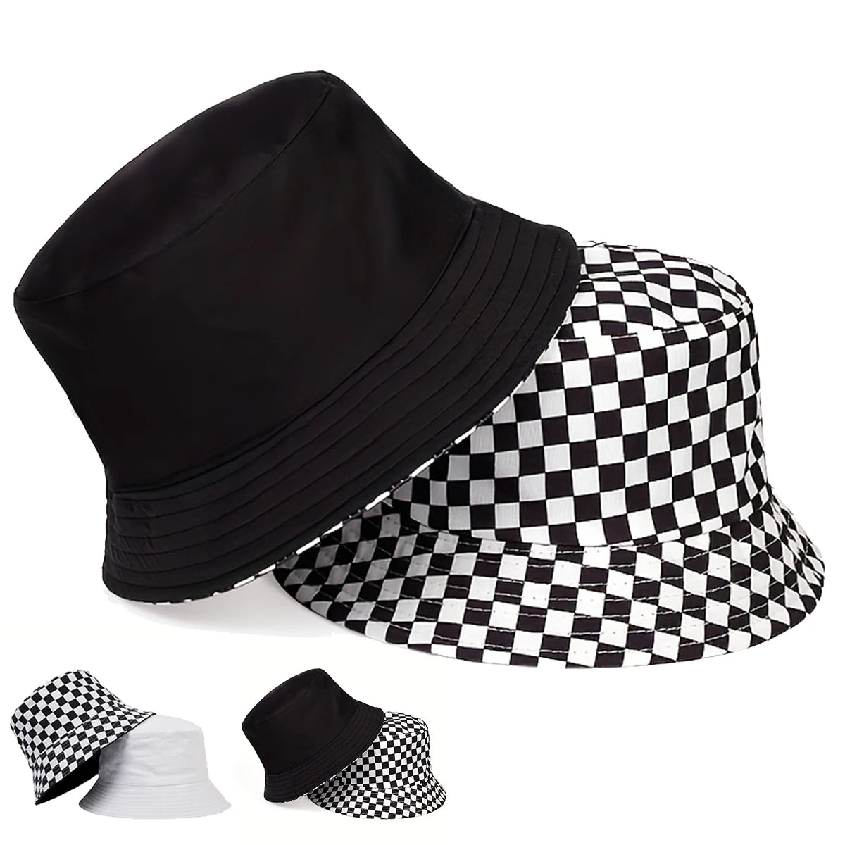 1piece Unisex ack White Grid Reversible Bucket Hat Outdoor Sunscreen Leisure Hat Spring Autumn Travel Tourism Beach Vacation