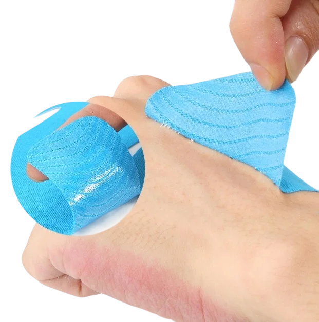 The medical-grade adhesive provides firm yet comfortable compression to stabilize joints and improve posture.