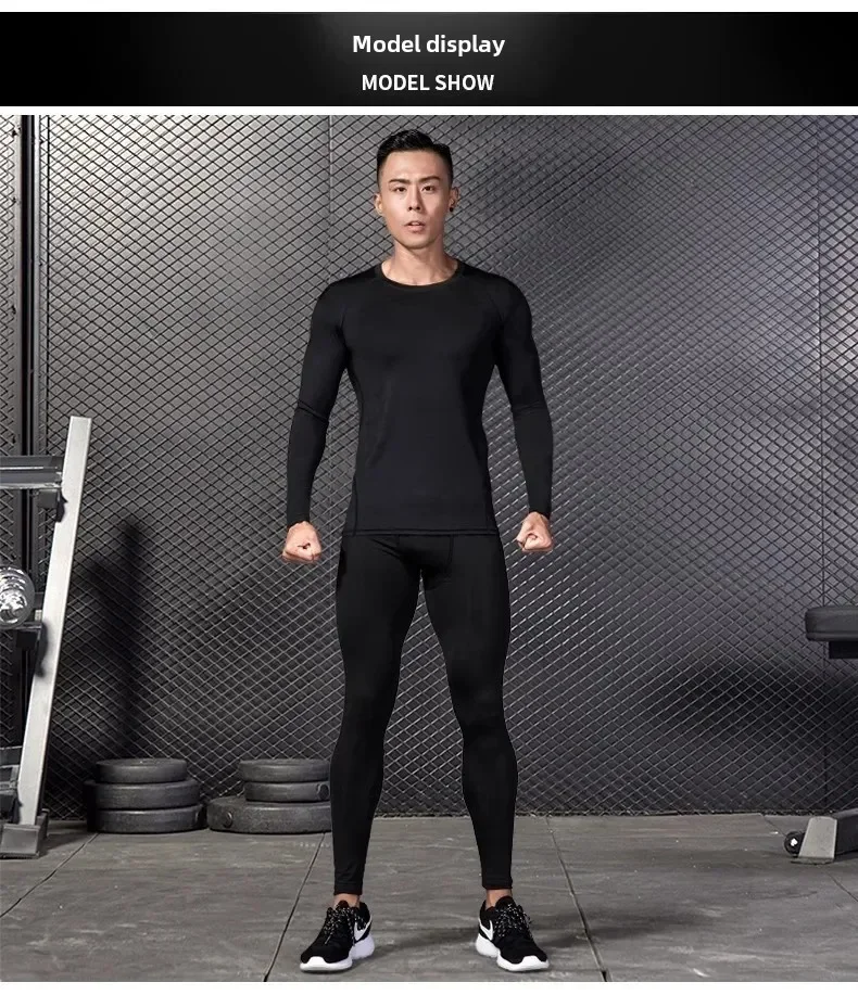 2pcs Men Compression Sportswear Suit Elastic Training Sports Yoga Sets Workout Jogging Fitness Clothing Tracksuit Pants