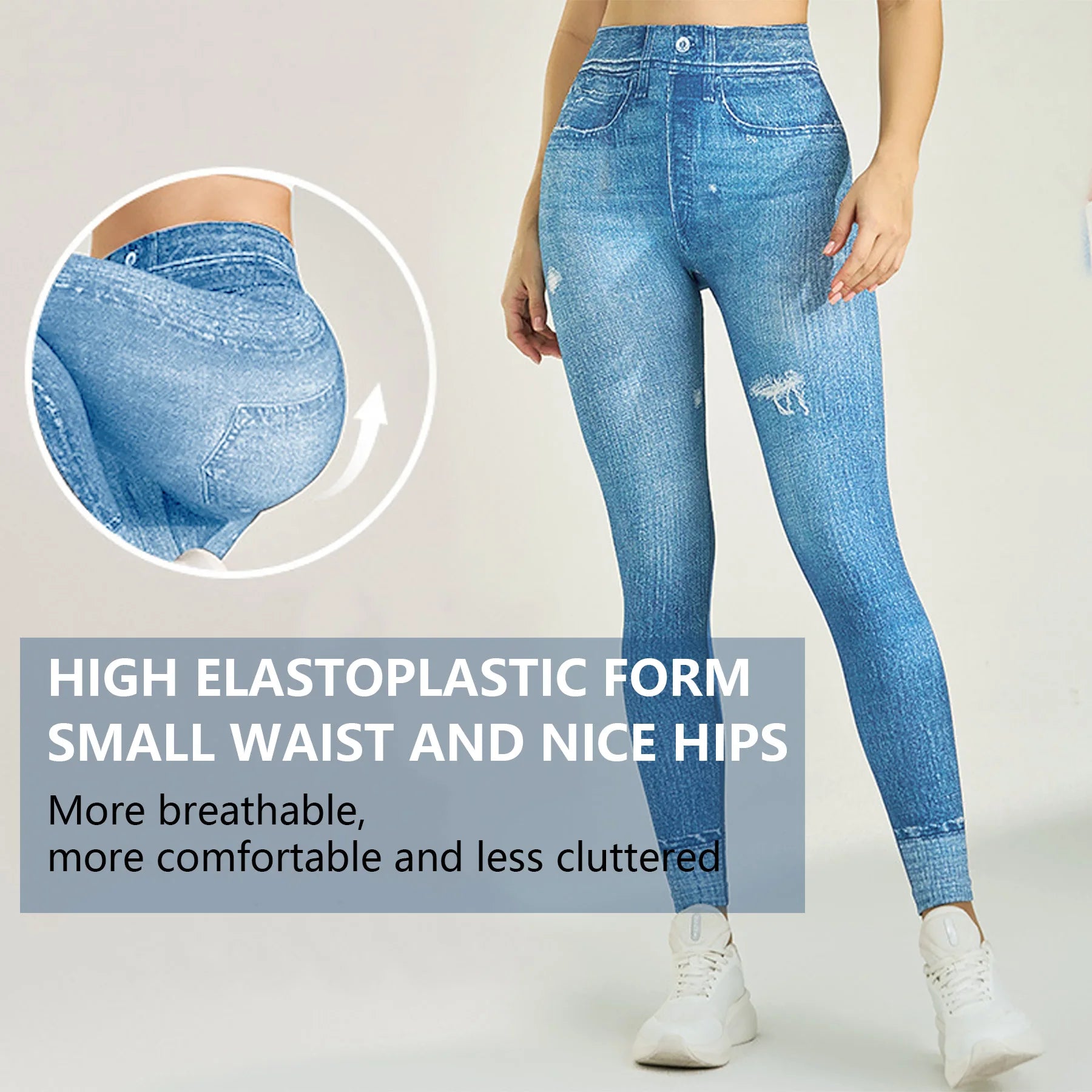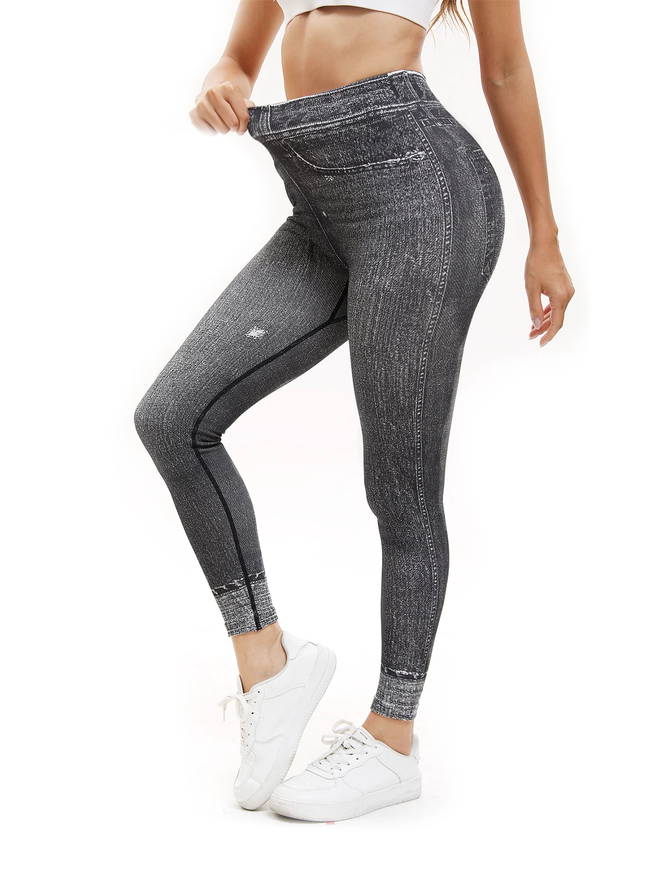 3PCS Women Imitating Denim High-Waist Legging Flat Fashionable Tight Pants Elastic Fitness And Yoga Pants Sexy Pencil Pants