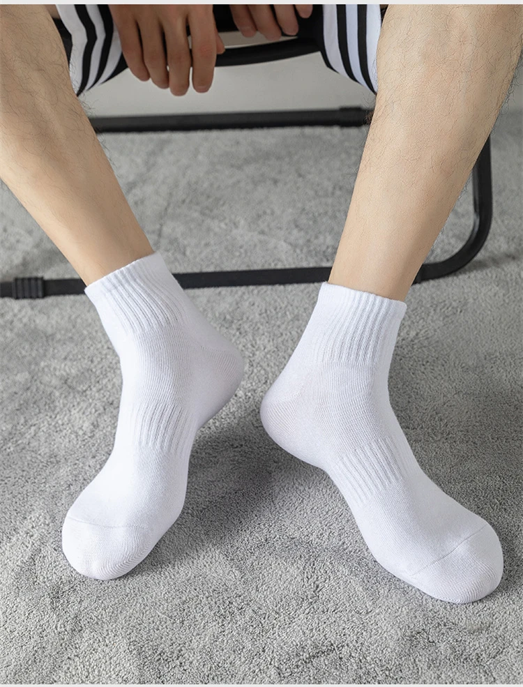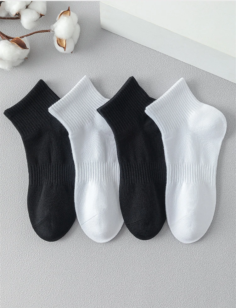 5 Pairs/lot 100% Cotton Men's Socks Spring Autumn Black White Absorption Women's Boat Socks Anti-Odor Breathable Sports Socks