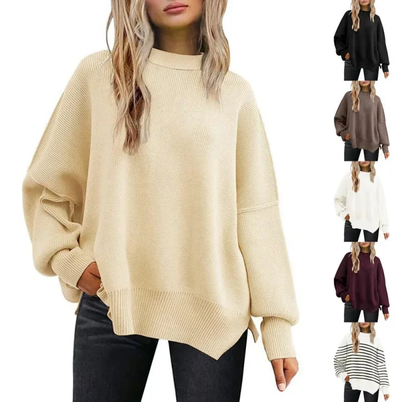 Autumn Women's Oversized Sweaters 2024 Fall Crewneck Batwing Sleeve Pullover Sweaters