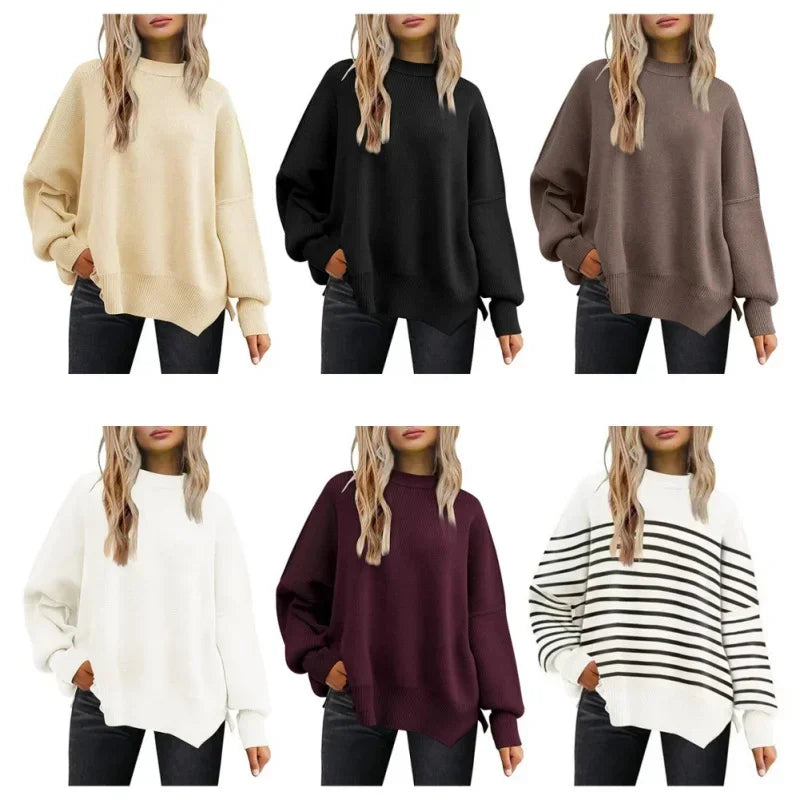 Autumn Women's Oversized Sweaters 2024 Fall Crewneck Batwing Sleeve Pullover Sweaters