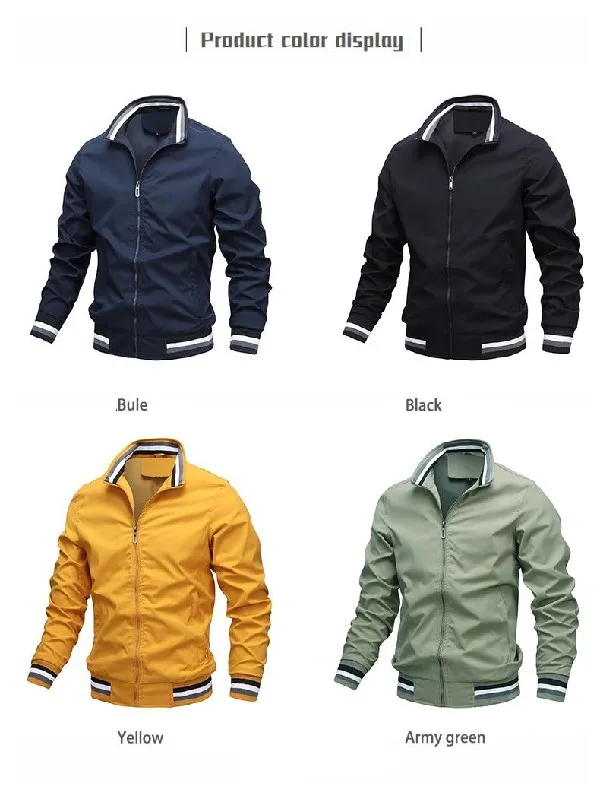 Casual Men's Sports Jacket Polyester Long Sleeve, Stand Fit, Youth Fashion, Four Seasons Outerwear