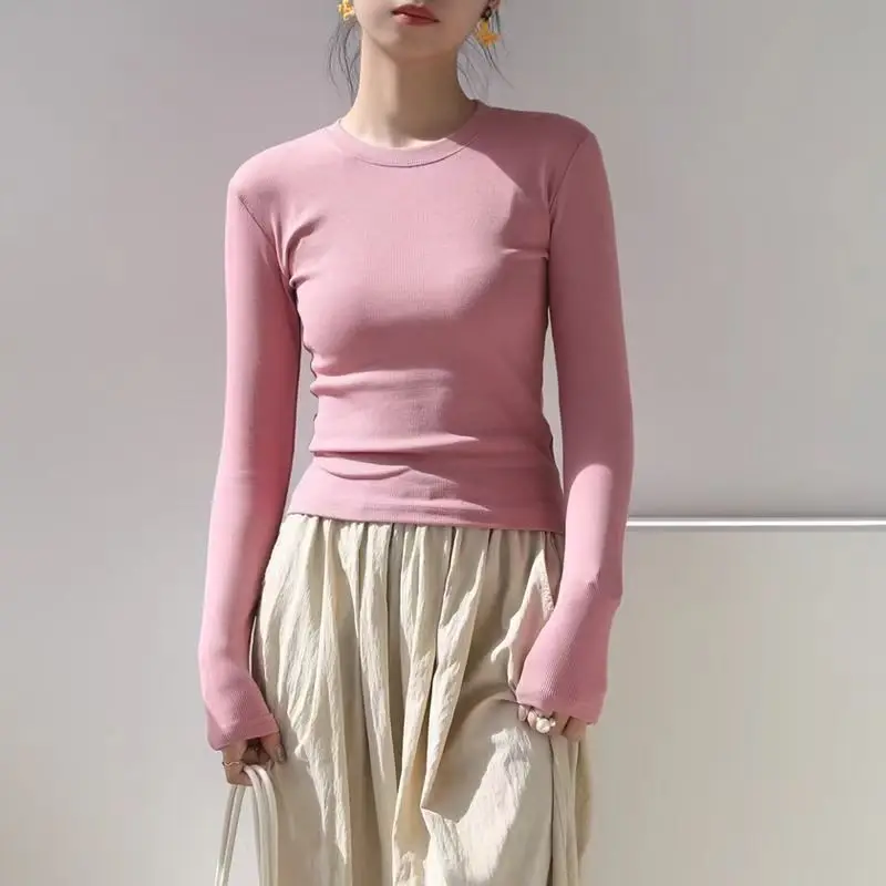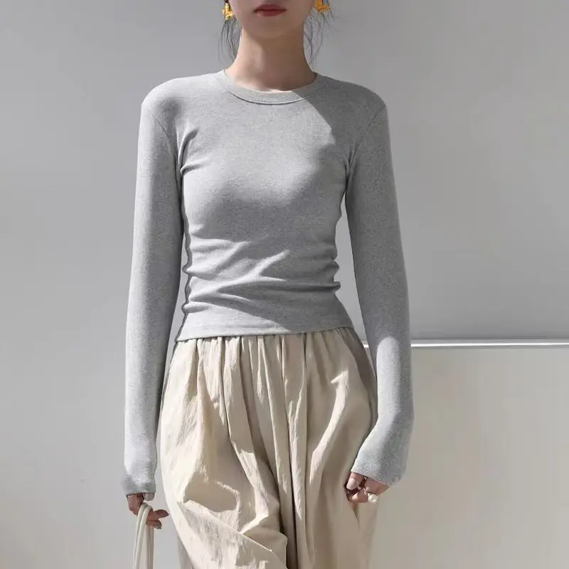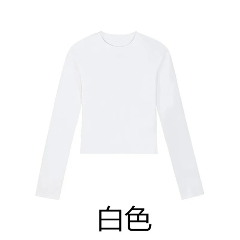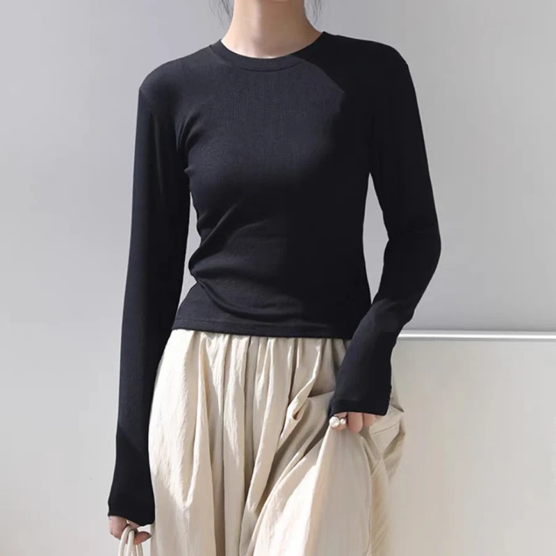 Cotton O Neck Long Sleeve Shirt Women Sexy Cropped Tops 2025 Autumn Black Casual Skinny Slim Basic Woman T Shirts White Clothing