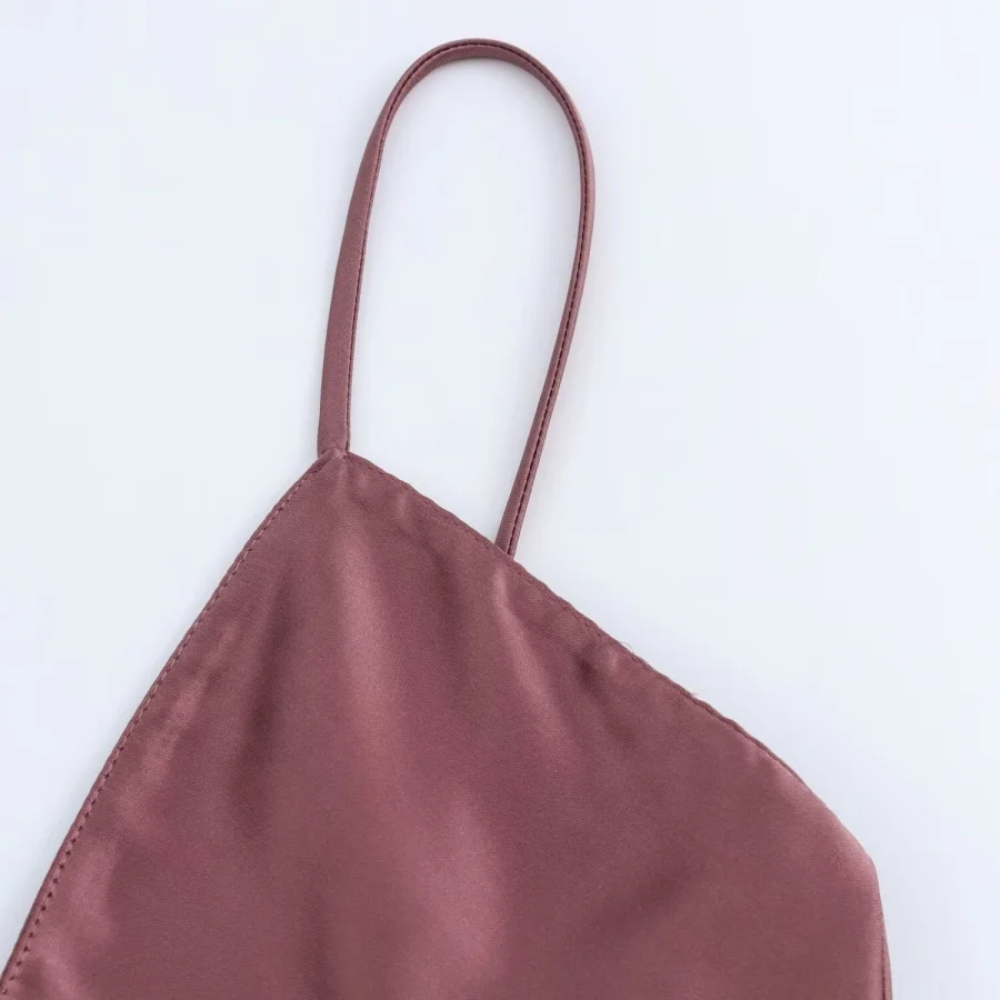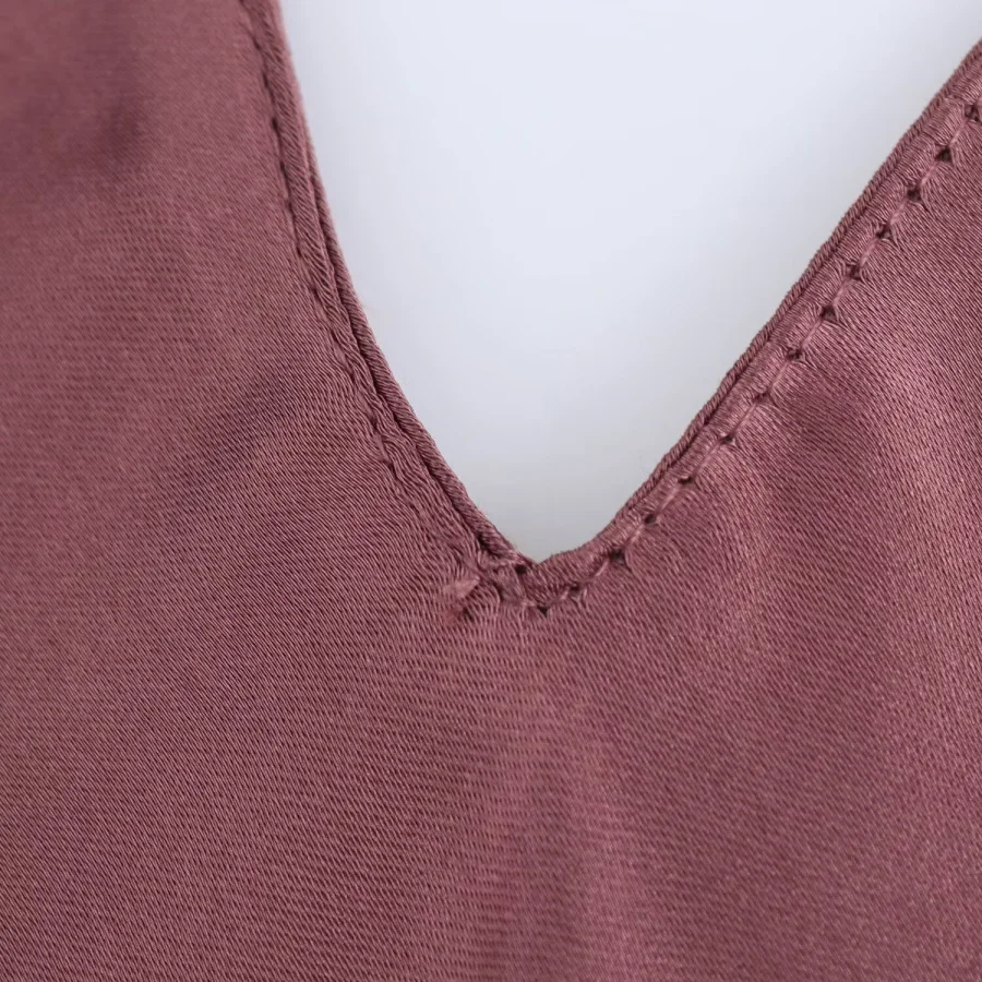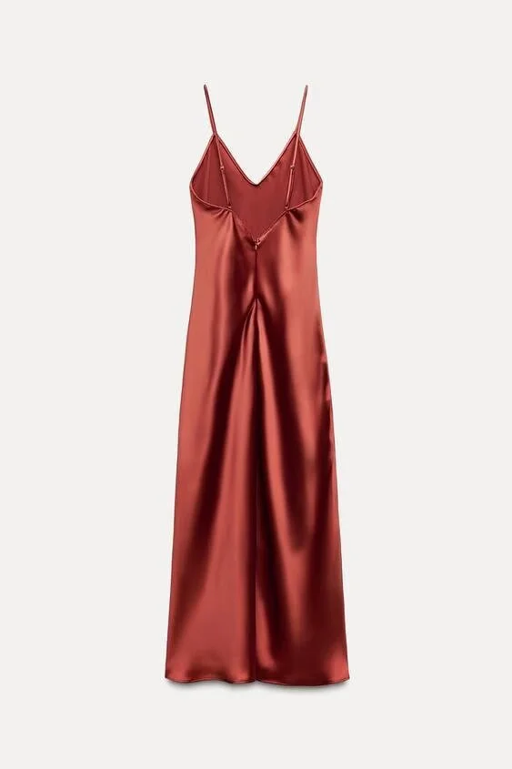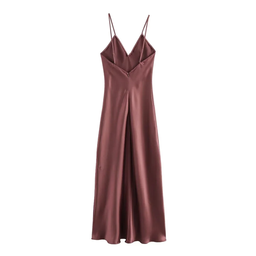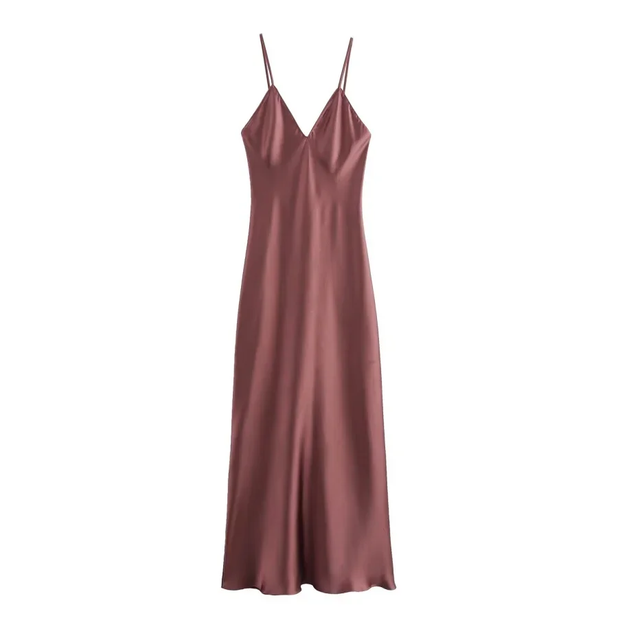 ETJ 2025 Spring New TRAF Elegant women's fashion silk satin texture MIDI dress sexy backless party slip dress