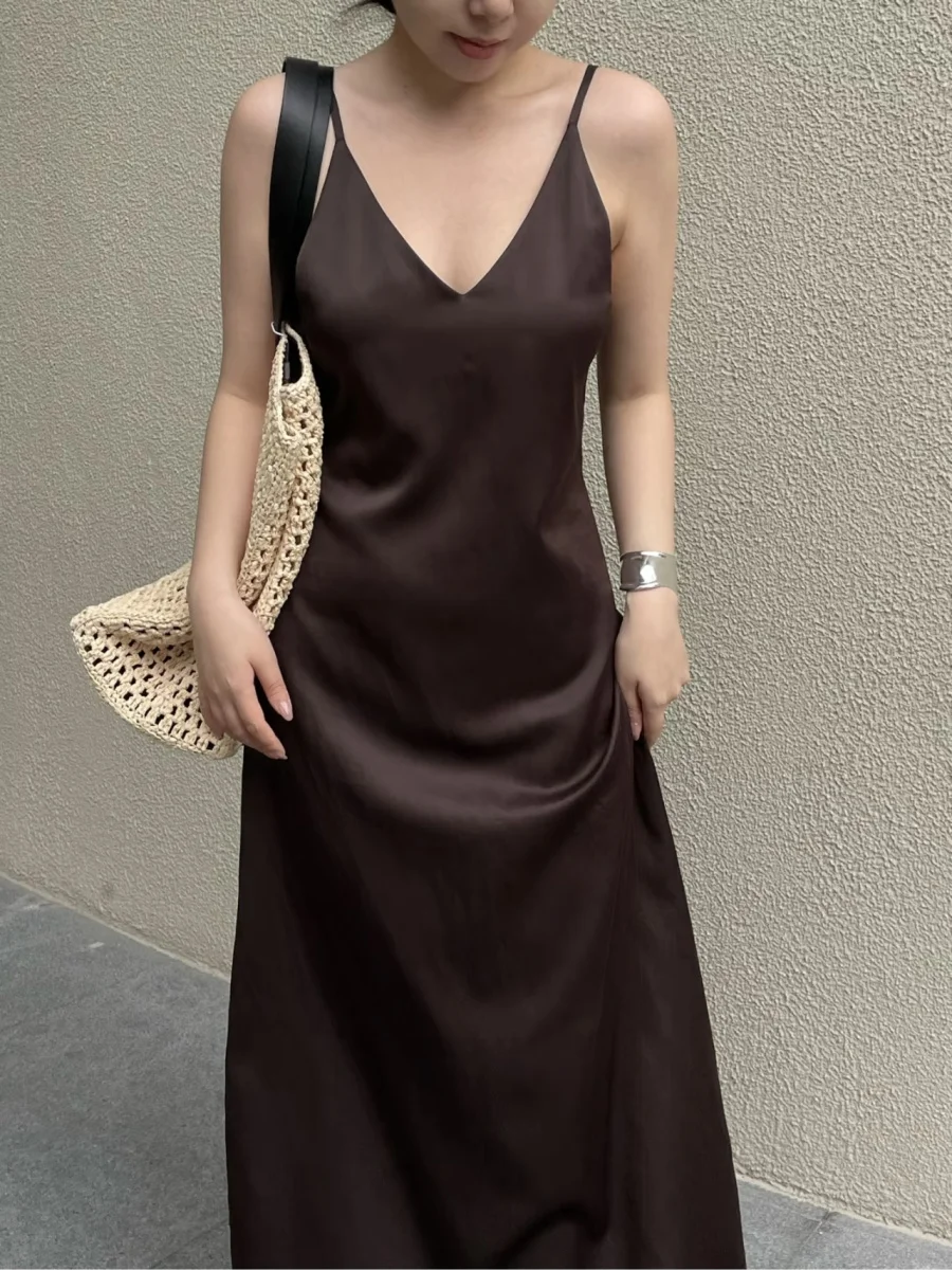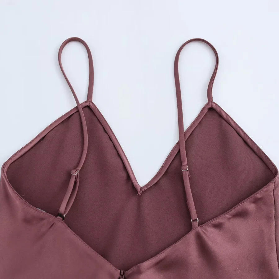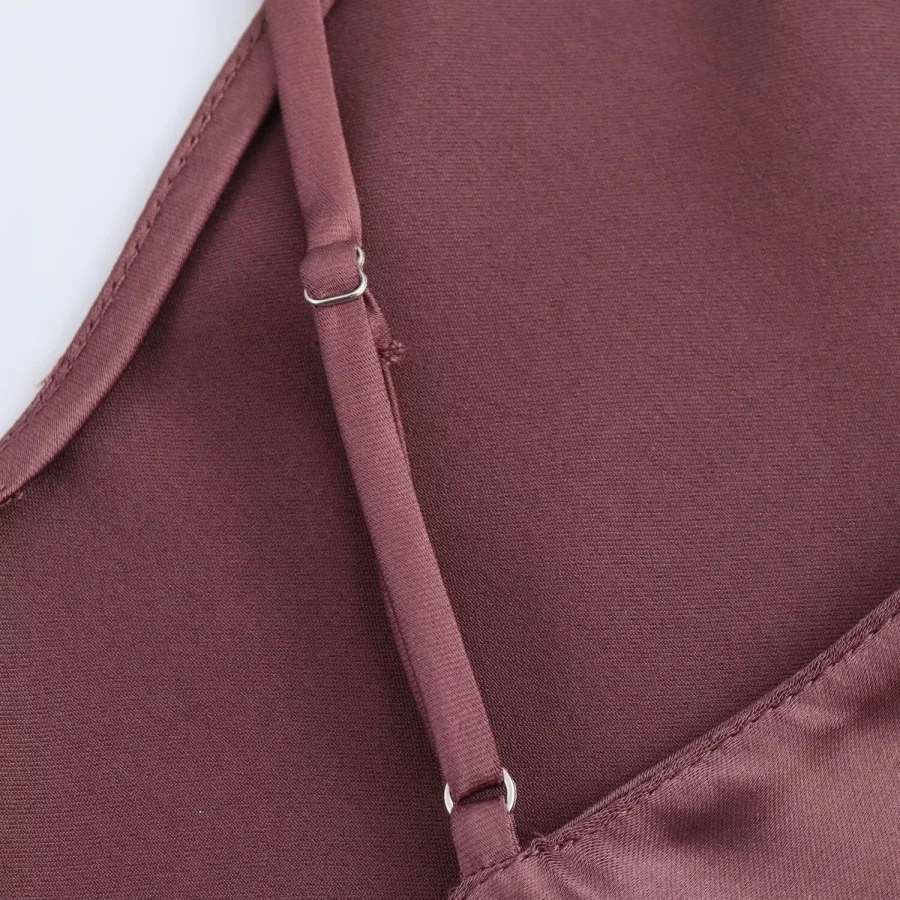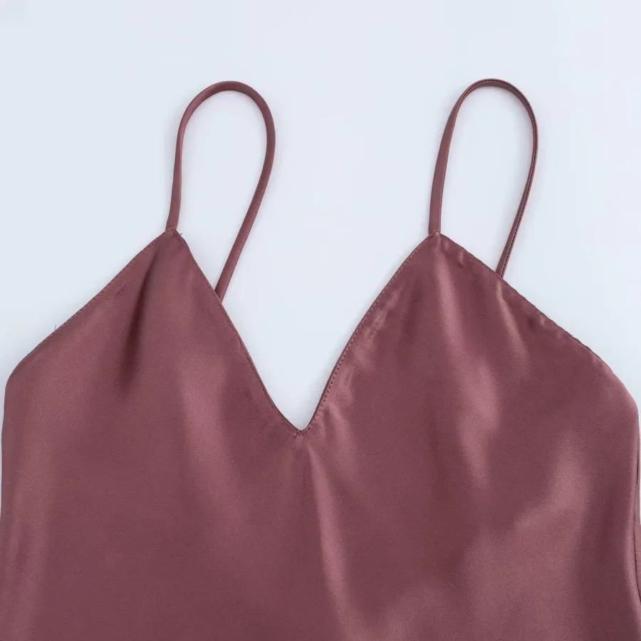 ETJ 2025 Spring New TRAF Elegant women's fashion silk satin texture MIDI dress sexy backless party slip dress