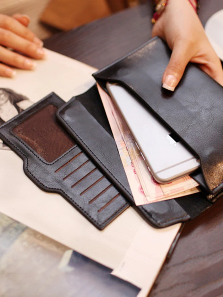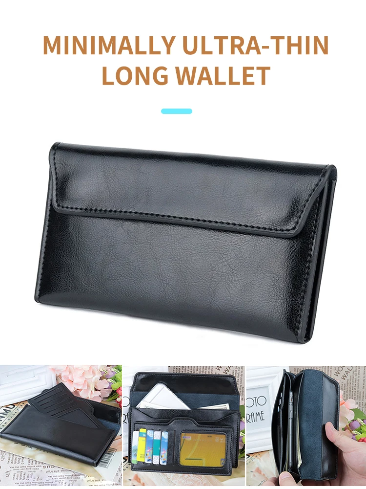 Leather large capacity ultra-thin long wallet, stylish and simple multifunctional handbag, Women Wallet