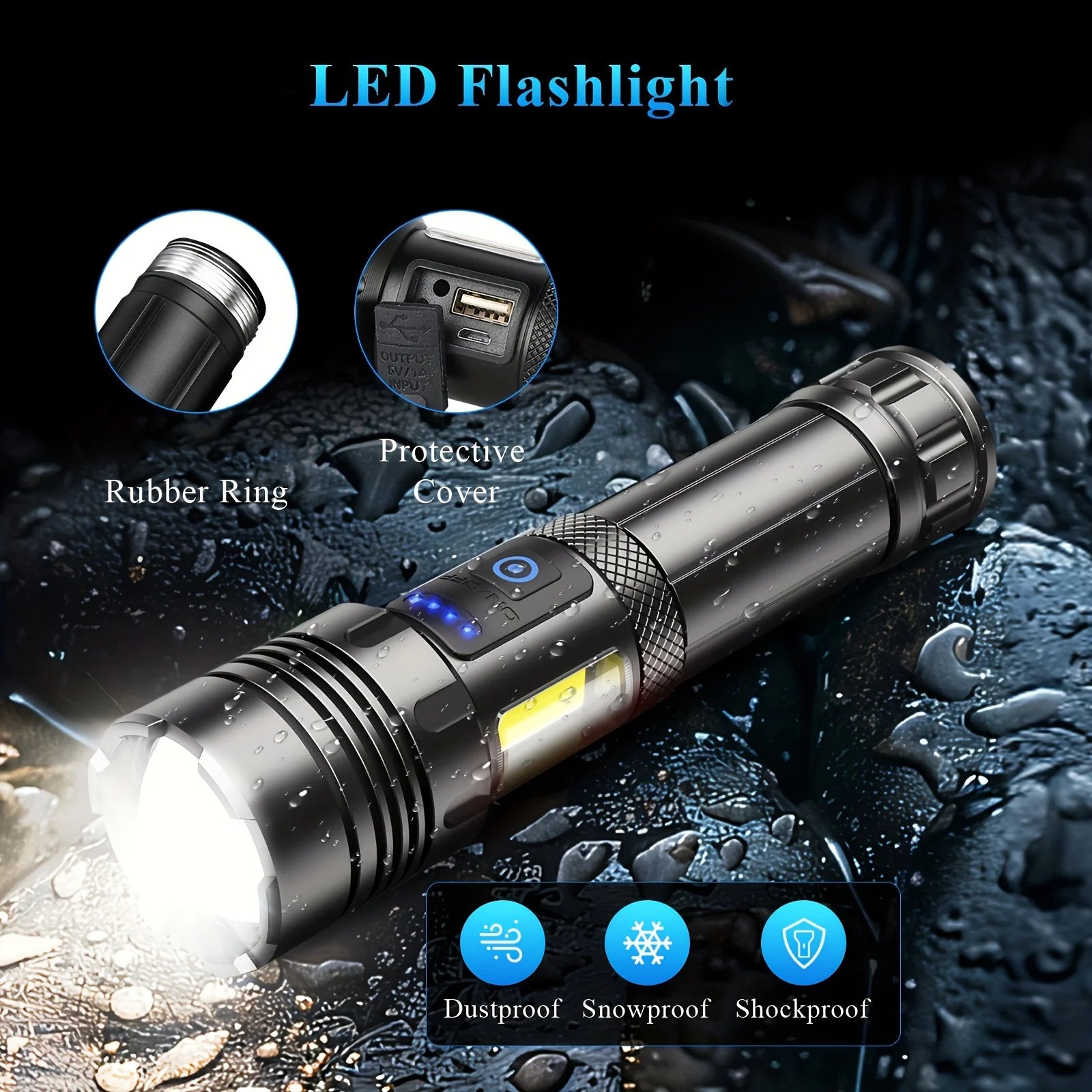 LED Flashlights, 90000 Lumens Zoomable 7 Modes Rechargeable Flash Light For Outdoor Home Hiking Camping Essentials