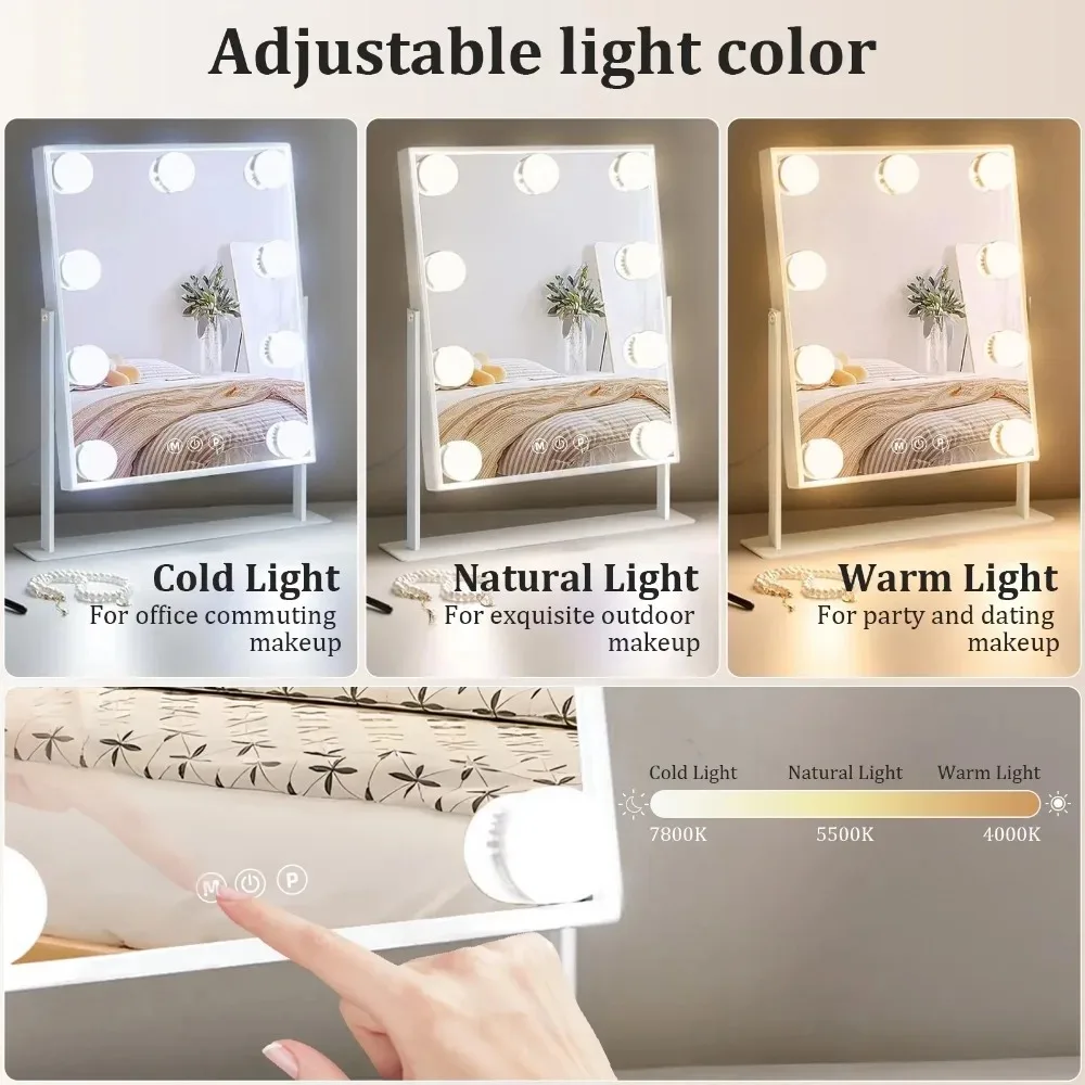 HD LED Lighting: Vanity mirror with lights built-in high-quality LED lights provide even, natural lighting, simulating various environments to ensure flawless makeup application.