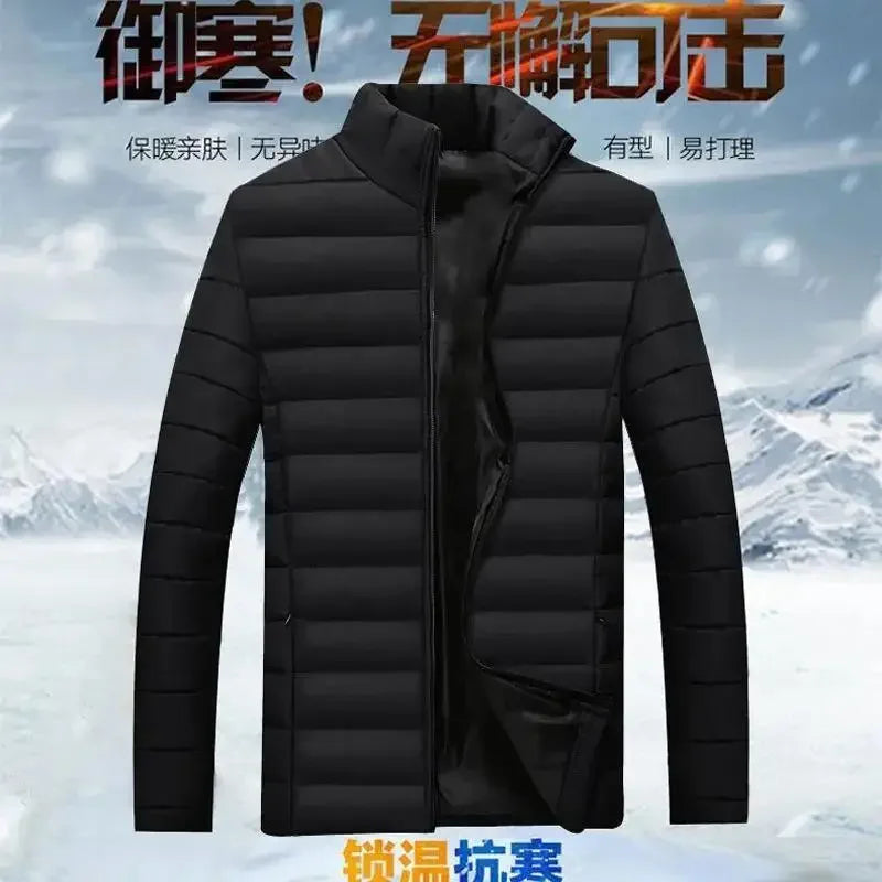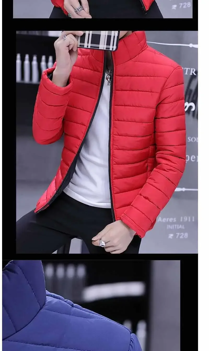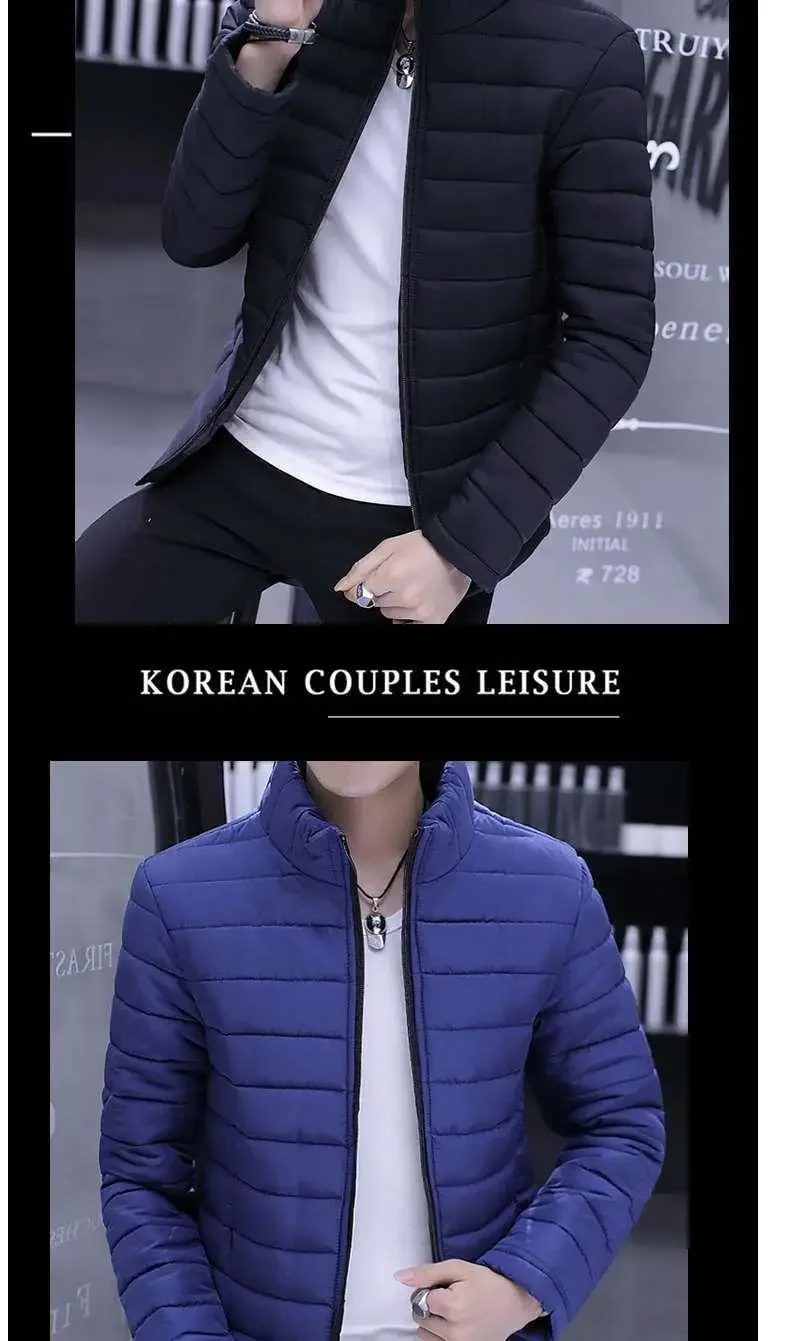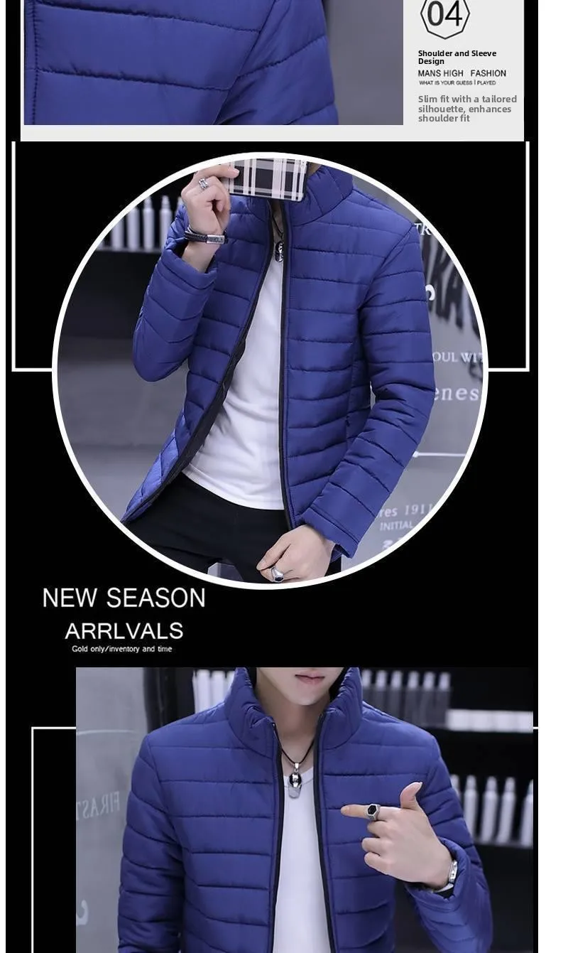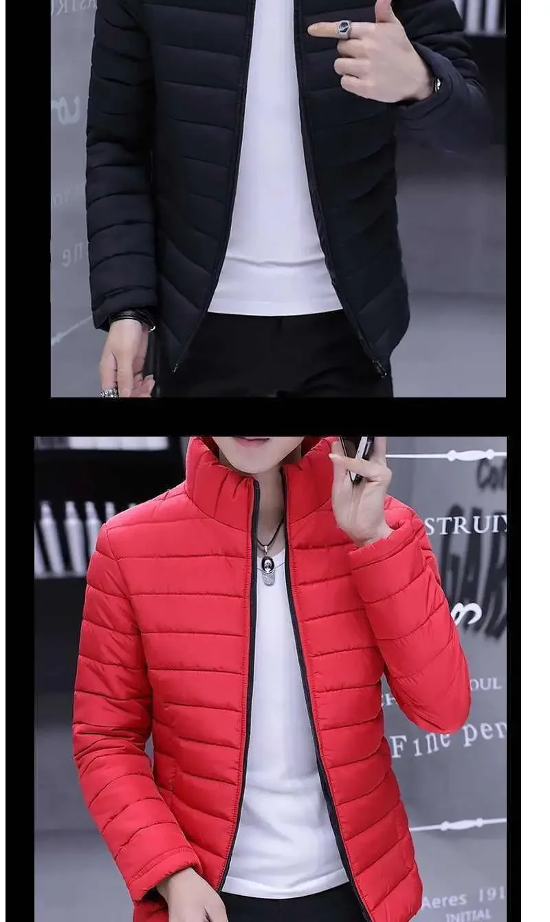 Loose Fit Short Hooded Cotton Jacket Thin Winter Coat for Men Casual Style Zipper Closure Solid Color Youth Fashion Urban Wear