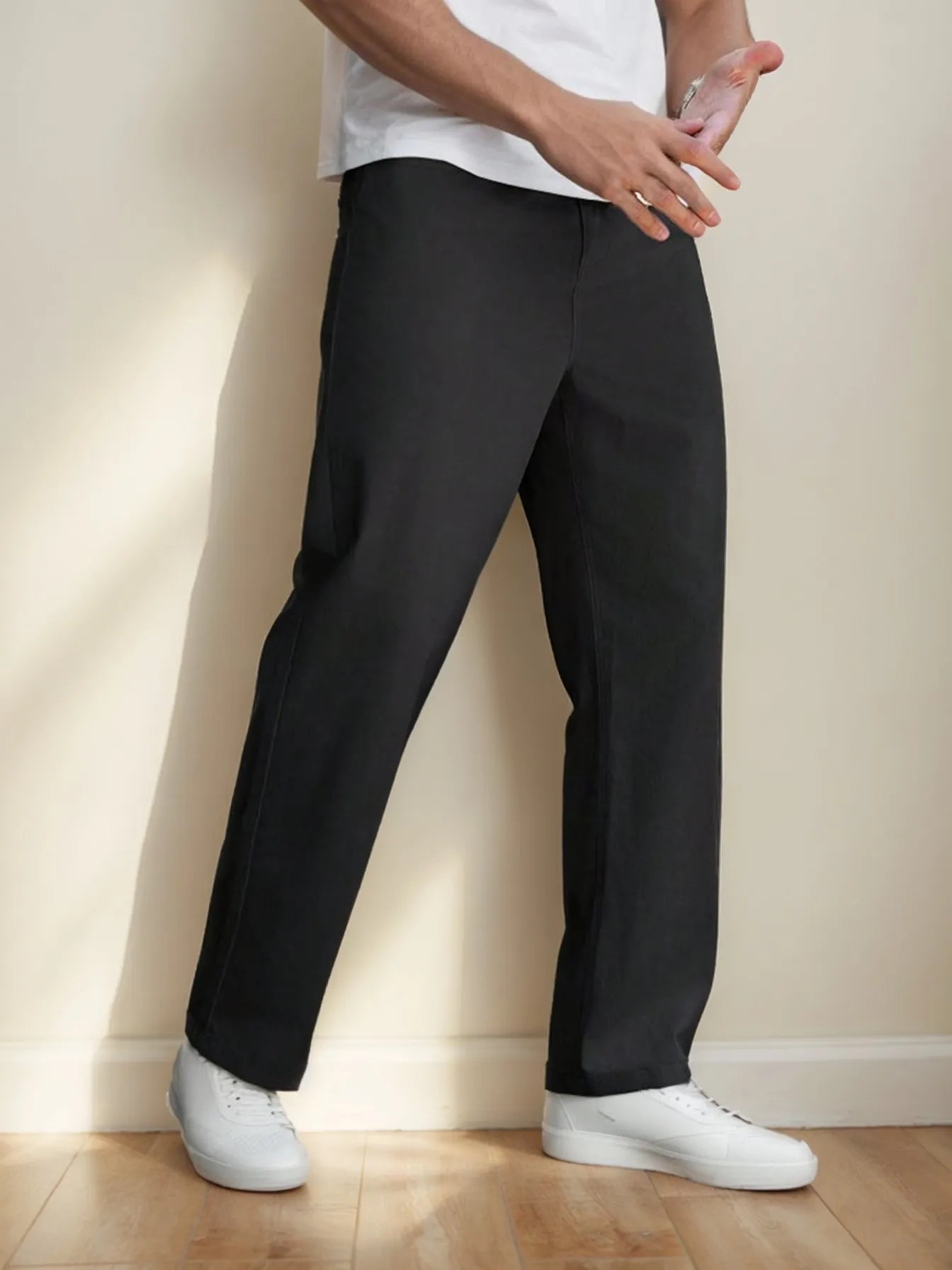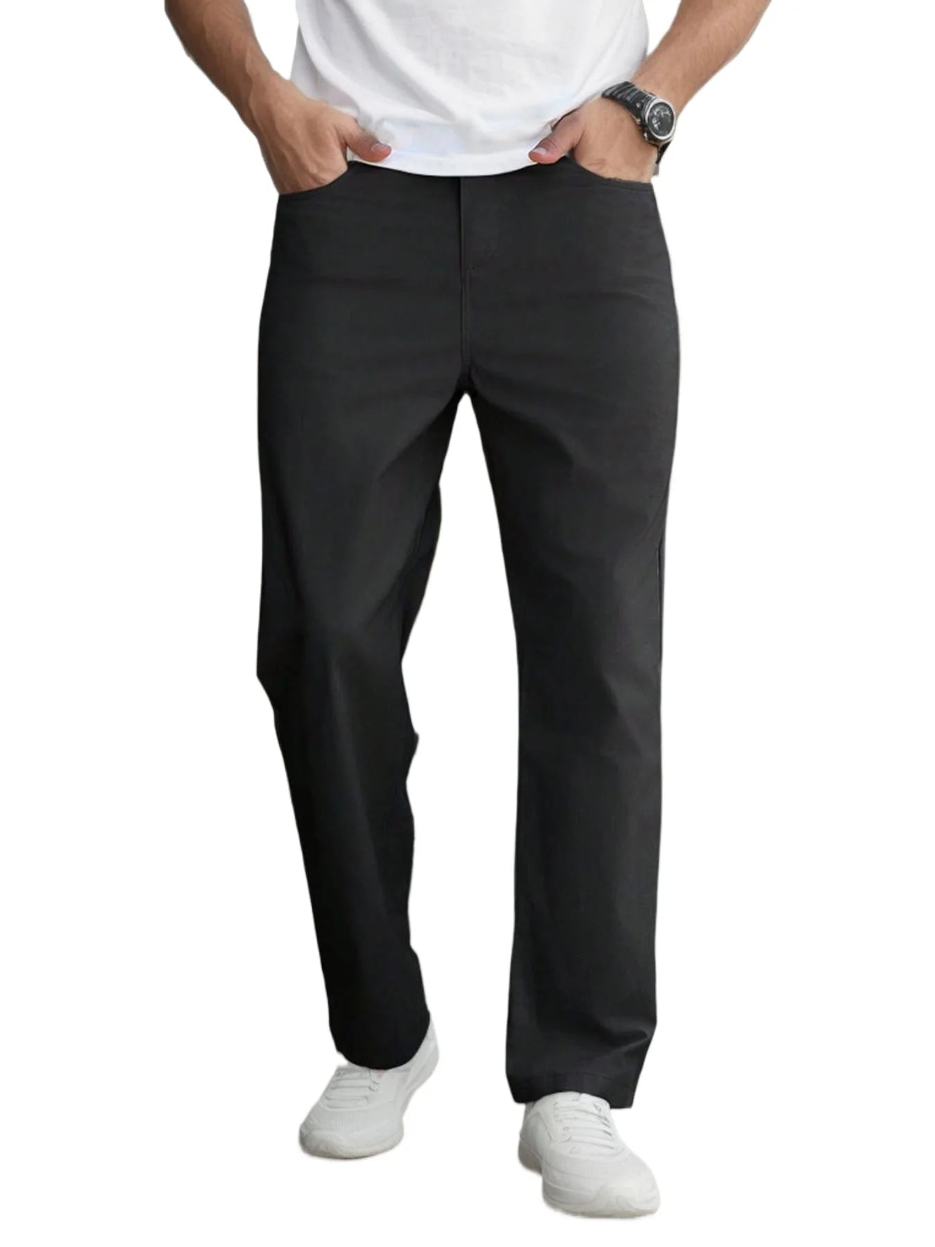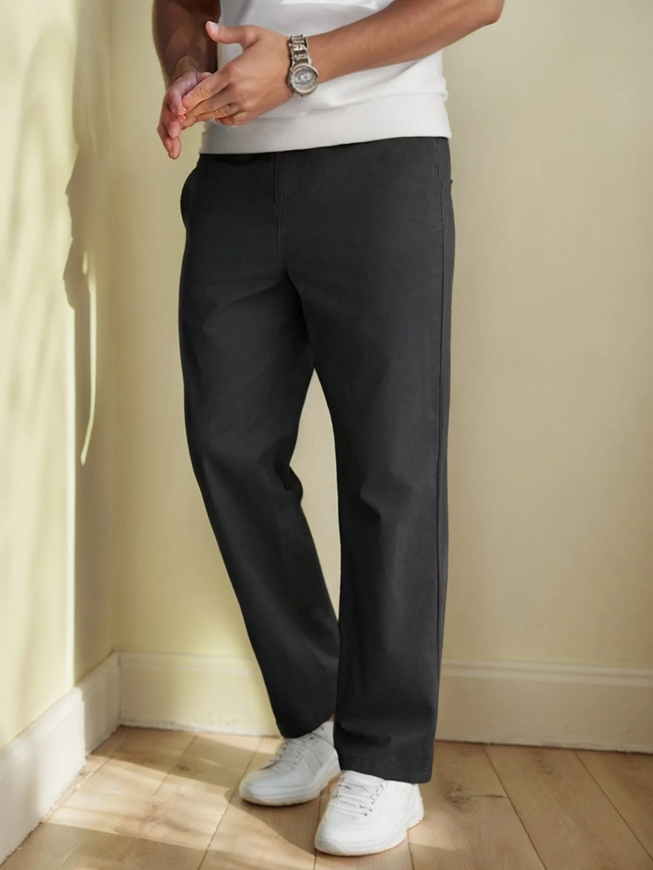 "Men's Elastic Waist Relaxed Fit Cotton Twill Pants, Comfortable and Casual, Classic and Versatile, Ideal for Everyday Wear