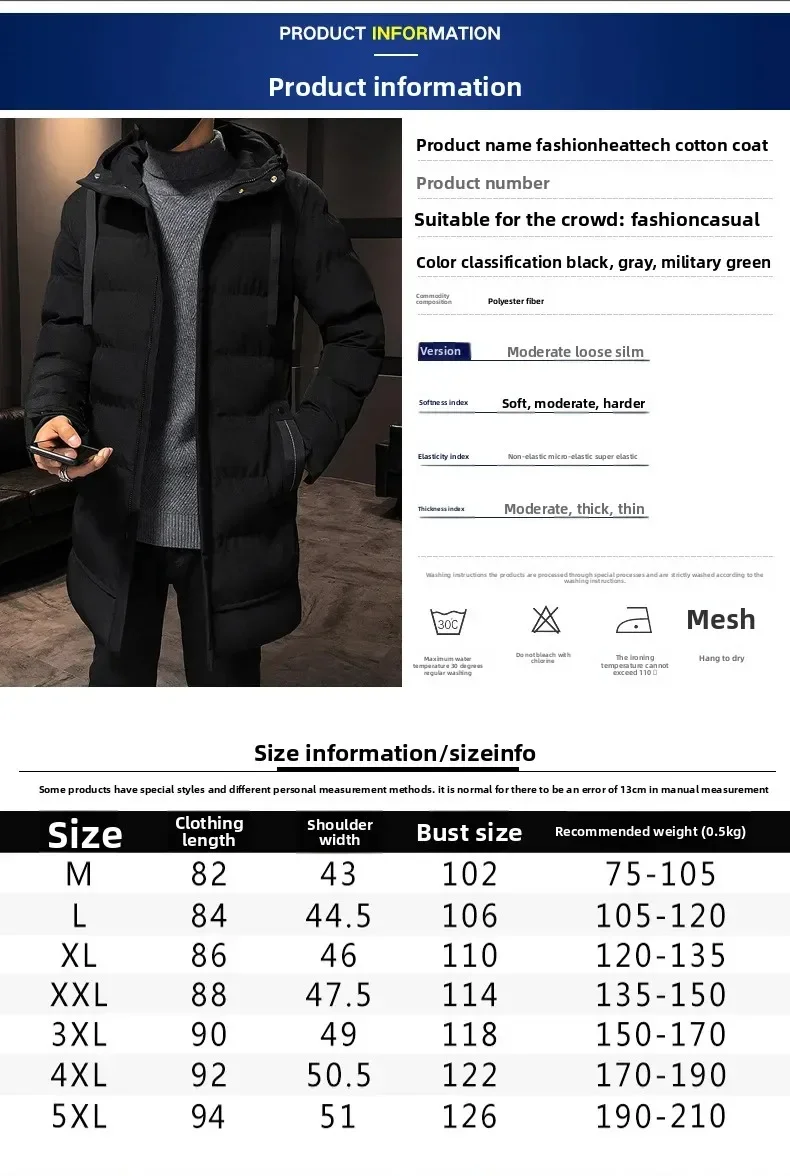 • Thickened Cotton-Padding : This men's jacket features thickened cotton-padding, providing exceptional warmth and comfort during the cold winter months.