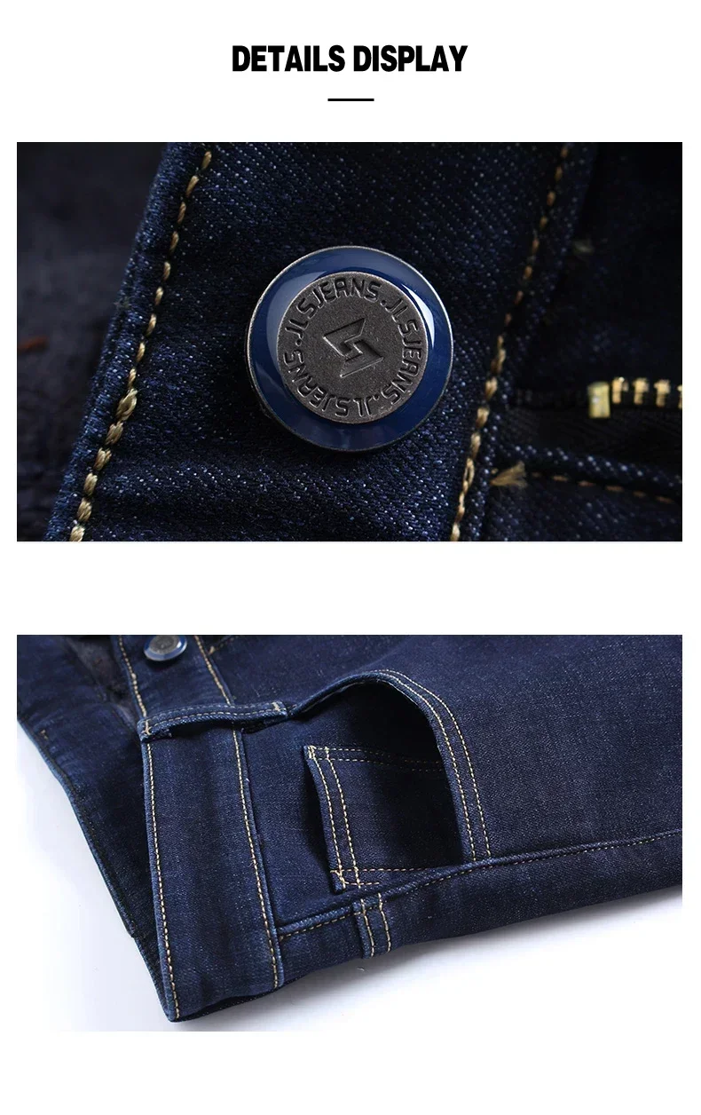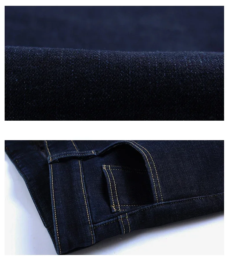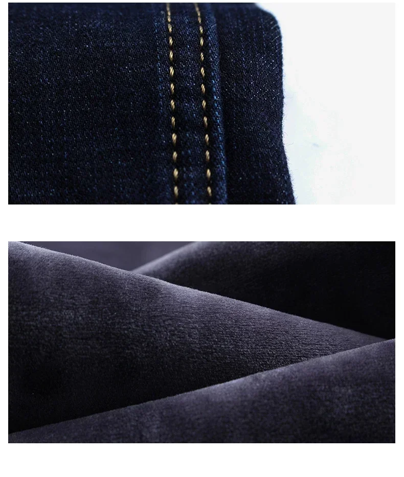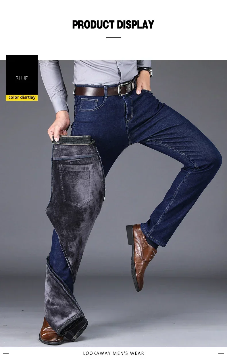 New Men's Fleece Warm Jeans Winter Thicken Plush Velvet Business Office Denim Trousers Brand Clothing Stretch Casual Male Pants