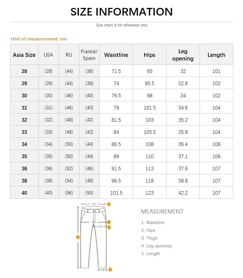 1. The size is Chinese size, pants size 32 = 32 inches waist = 81.5cm waist.