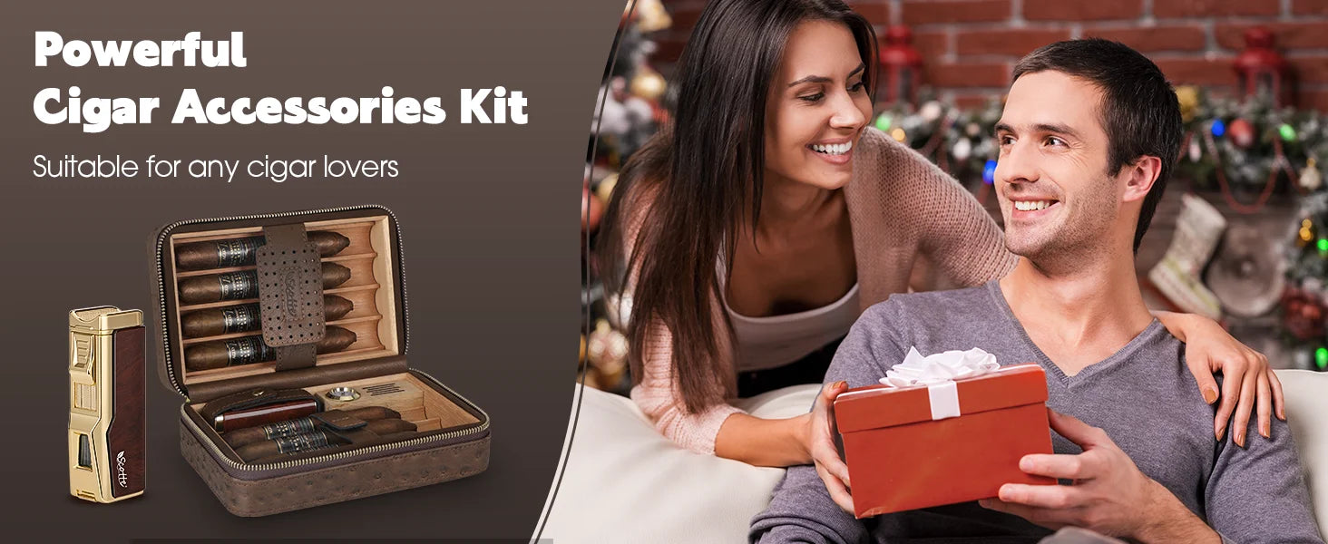 Upscale Luxury Gift Options:Excellent quality travel humidor set is an essential tool for smoking cigars,great boon for cigar lovers,exquisite gift box packaging makes it more high-end luxury pleasing to the eyes,definitely a amazing gift for a father,husband, friends, boss, or any other cigar smoker.