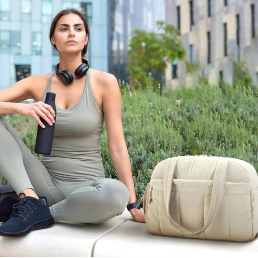 Quilted Puffer Gym Bag with Wet Pocket Carry on Bag Large Weekender Overnight Bag Gym Tote Bag Shoulder Bag for Women Travel