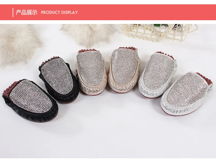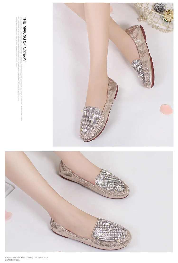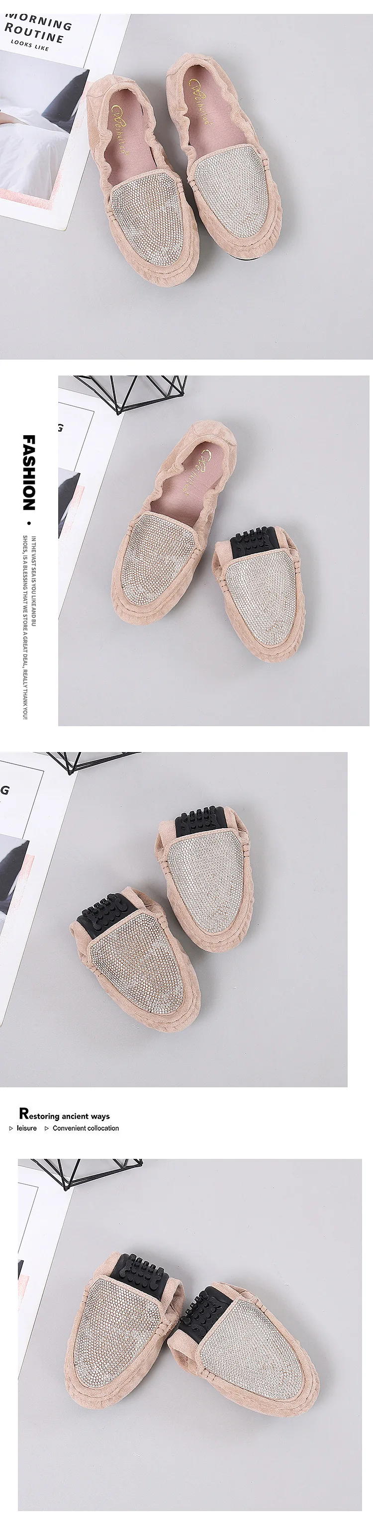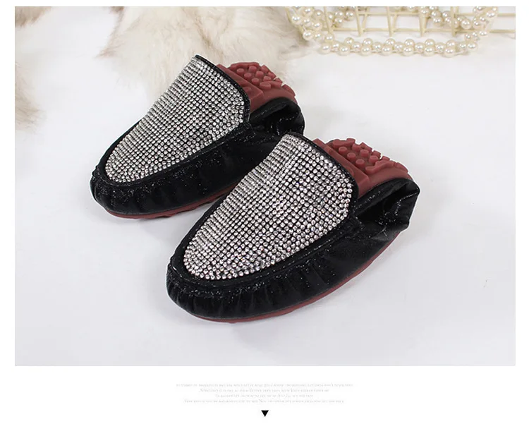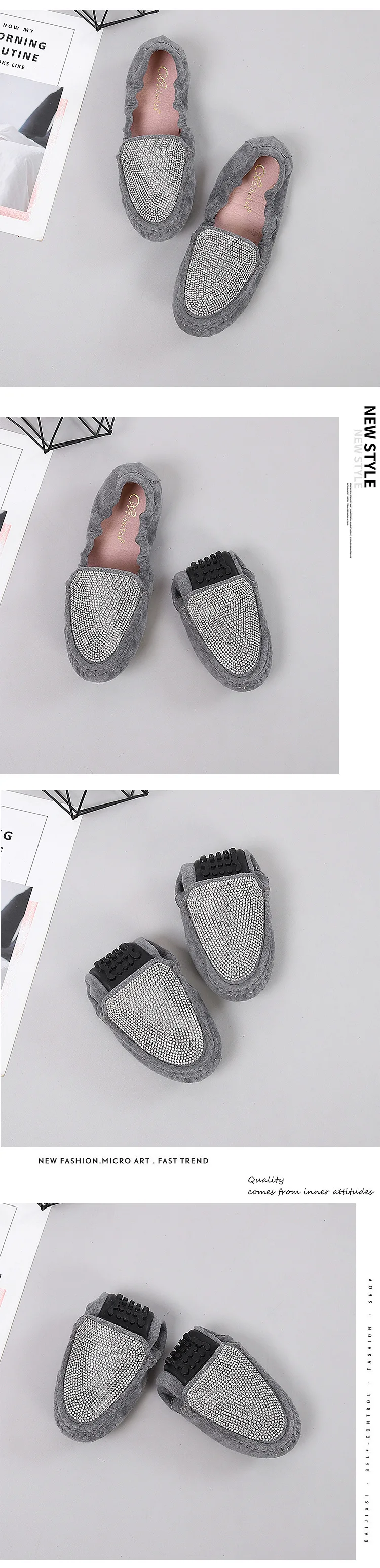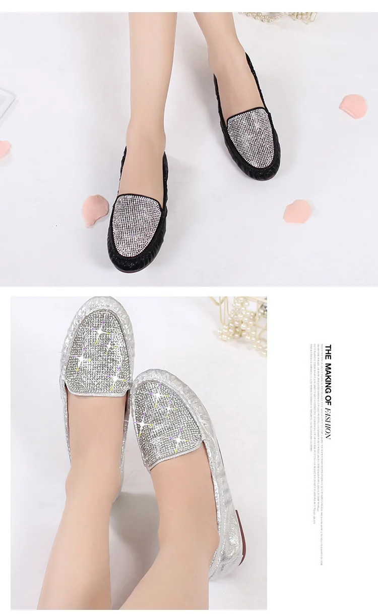 Sequines Cloth Women foldable flats crystal rivets mocasines female elastic band slip on loafers 41-43 big size work shoes