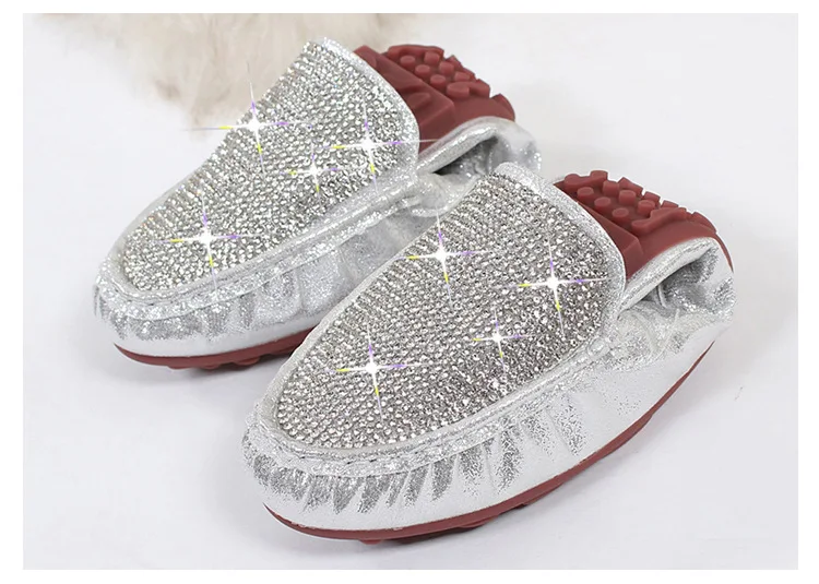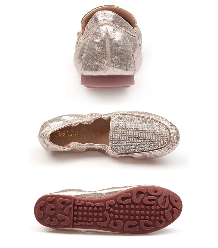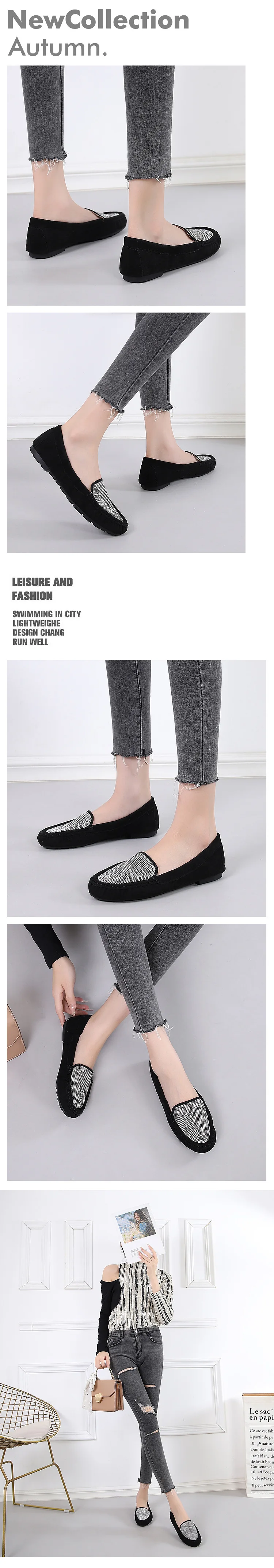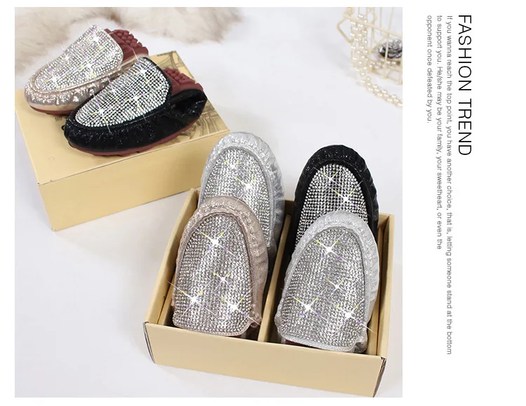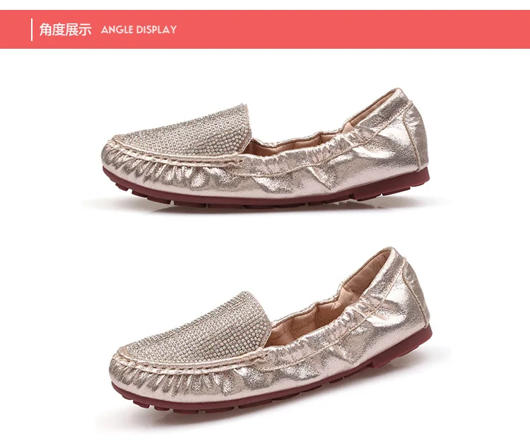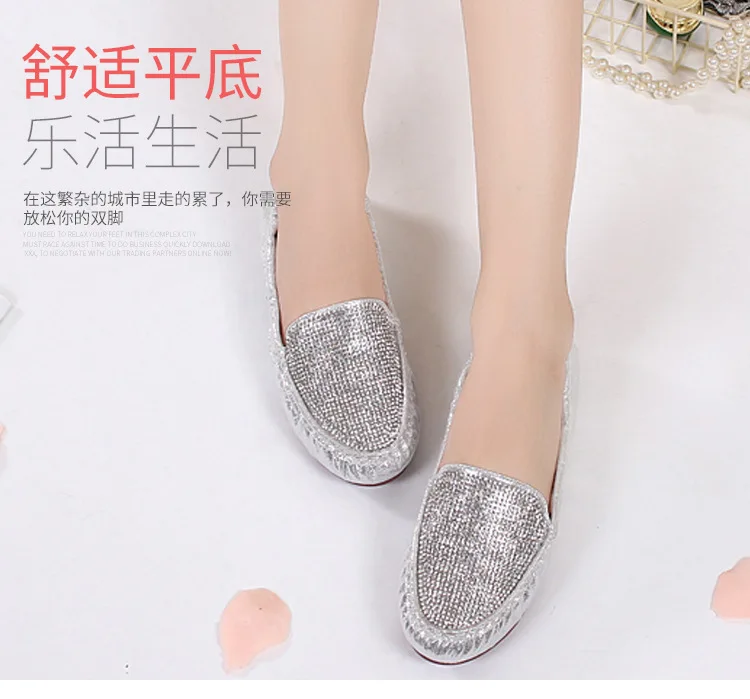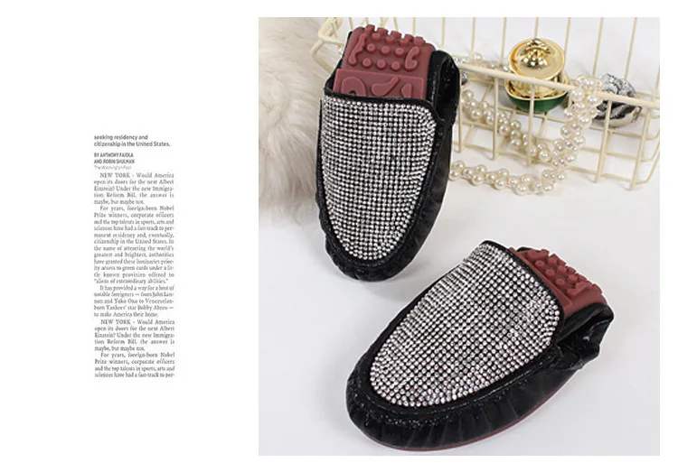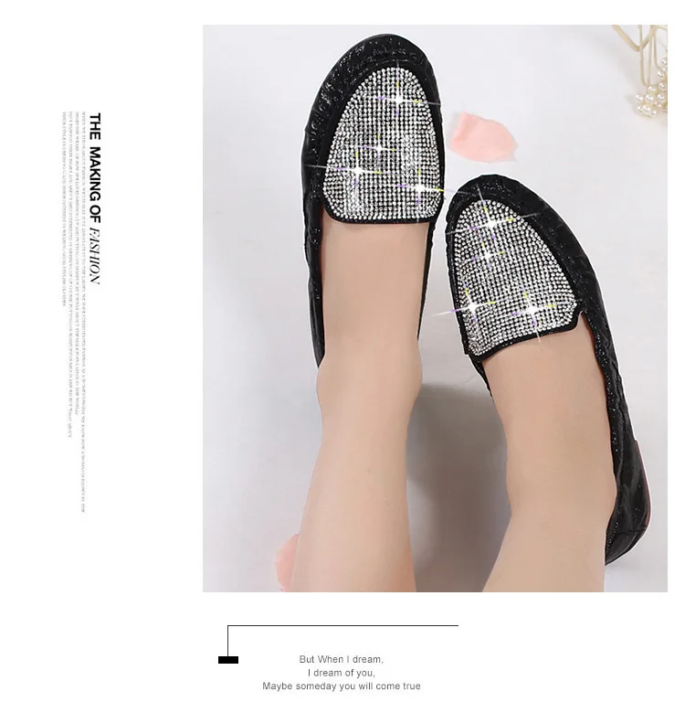 Sequines Cloth Women foldable flats crystal rivets mocasines female elastic band slip on loafers 41-43 big size work shoes