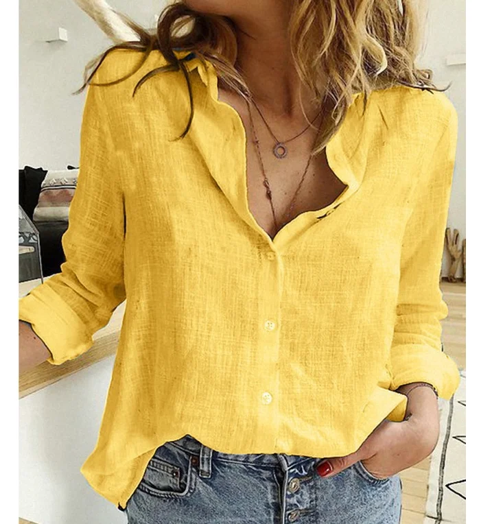 Women Casual Long Sleeve Cotton Linen Loose Shirt Elegant Solid Harajuku Lapel Blouse Vintage Oversize Tops Y2K Streetwear Tunic
