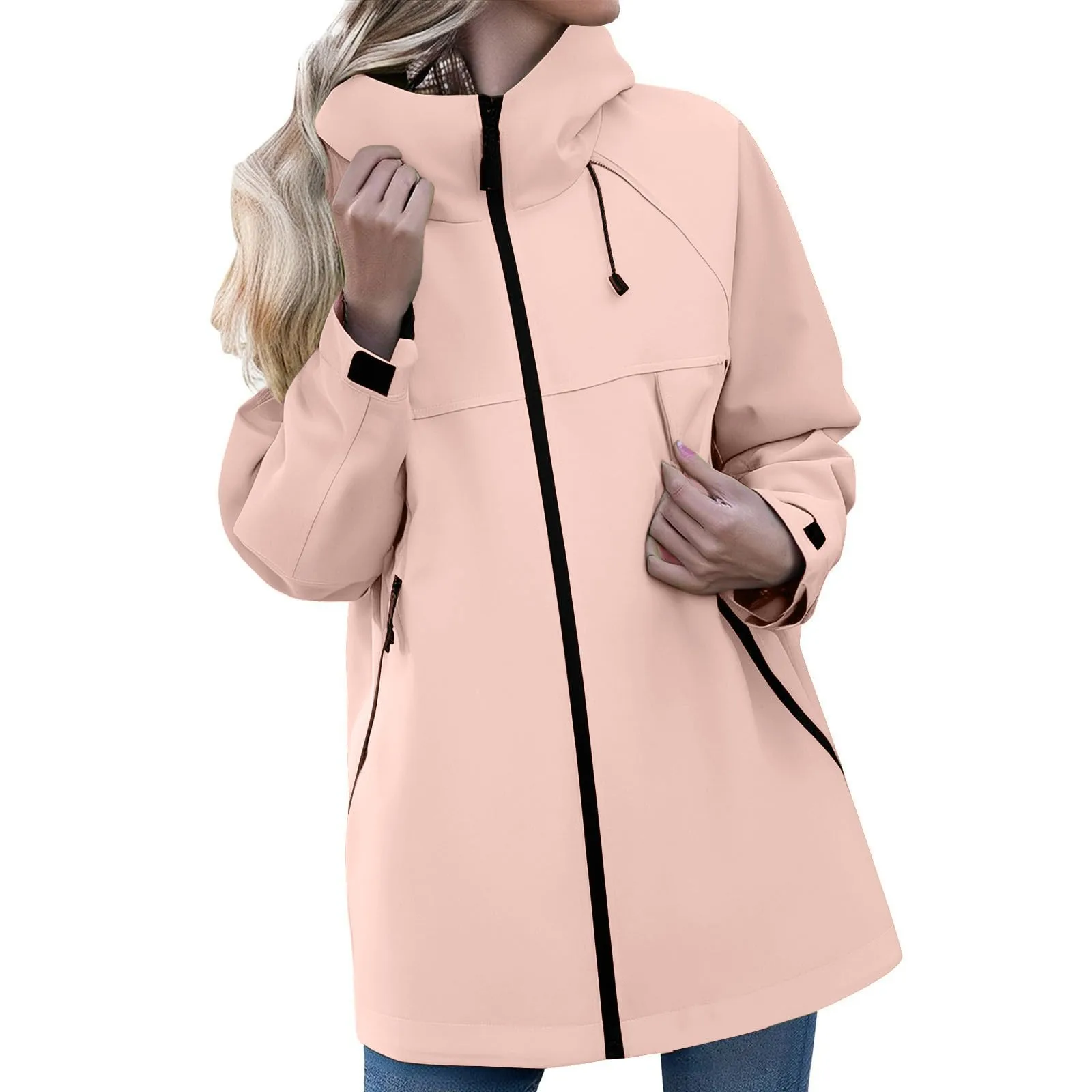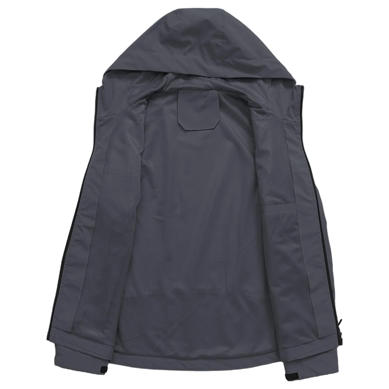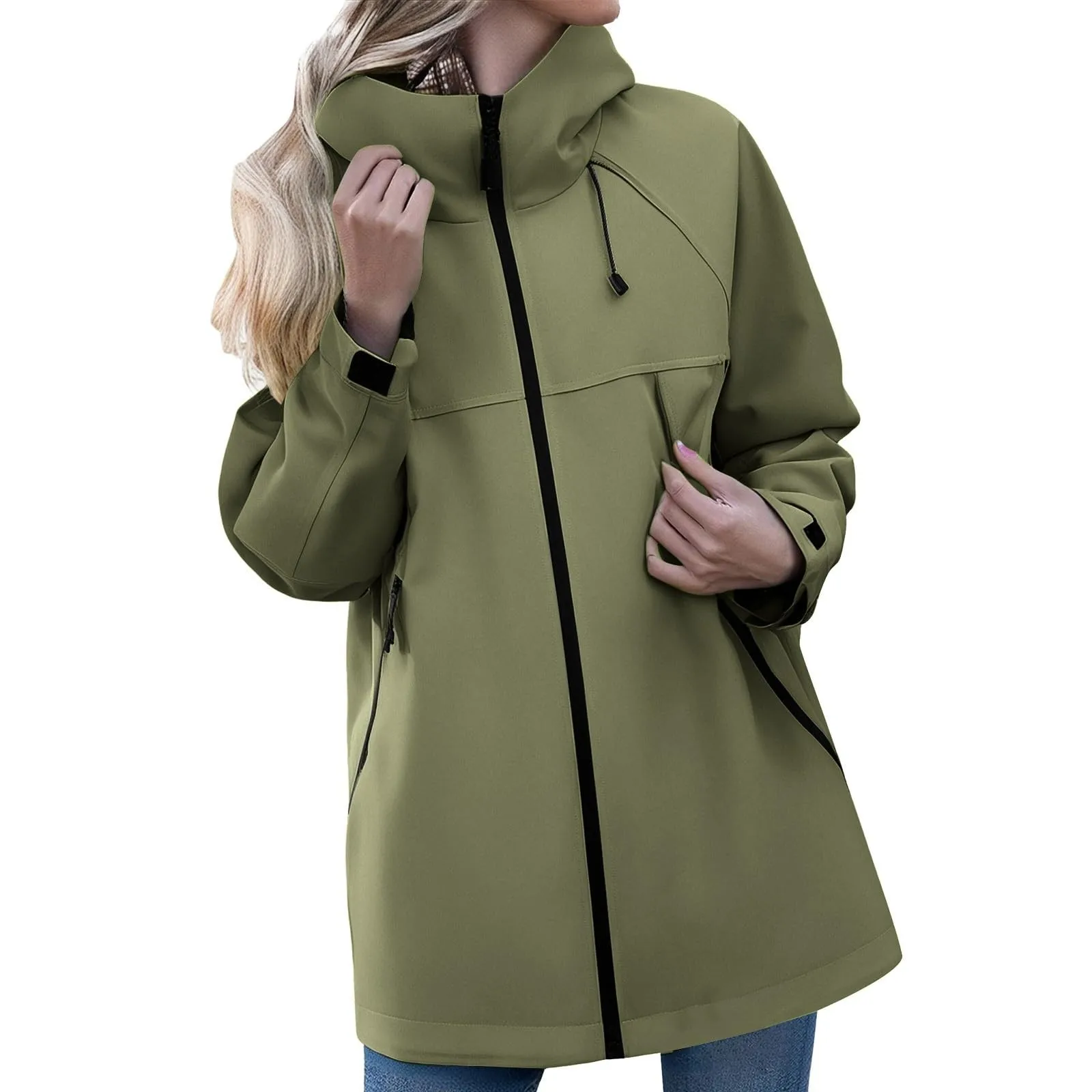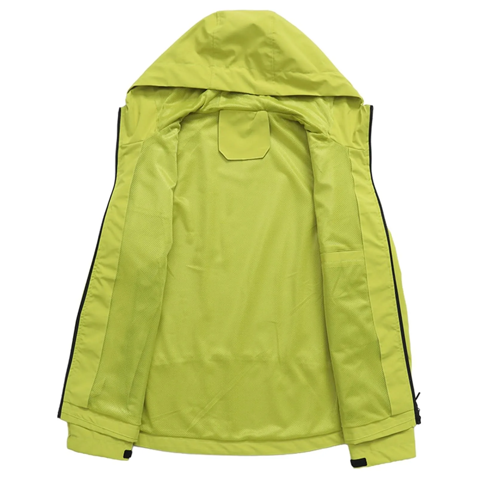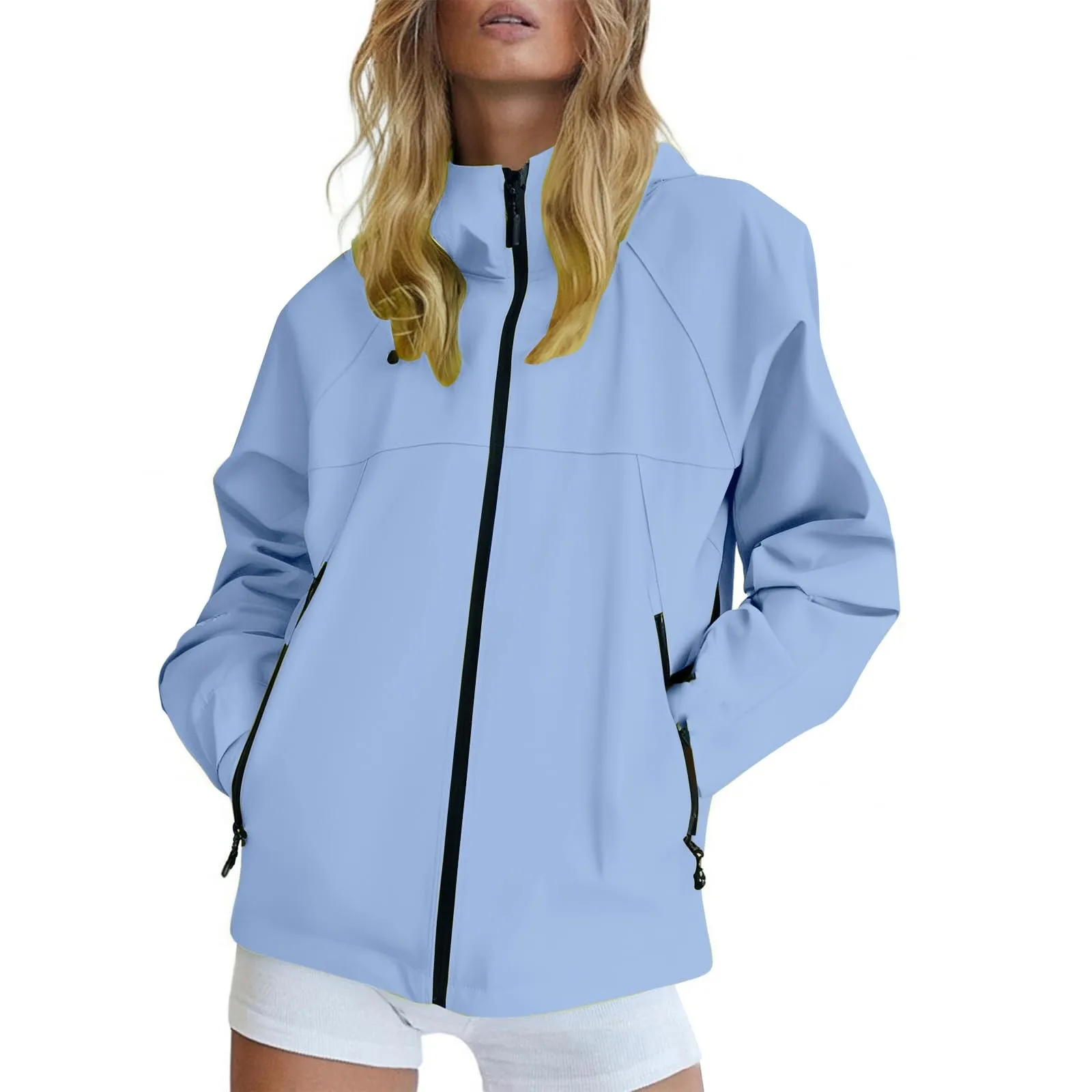 Women Casual Zipper Hooded Jacket Solid Color Breathable Windproof Waterproof Thin Jacket Outdoor Camping Mountaineering Clothin