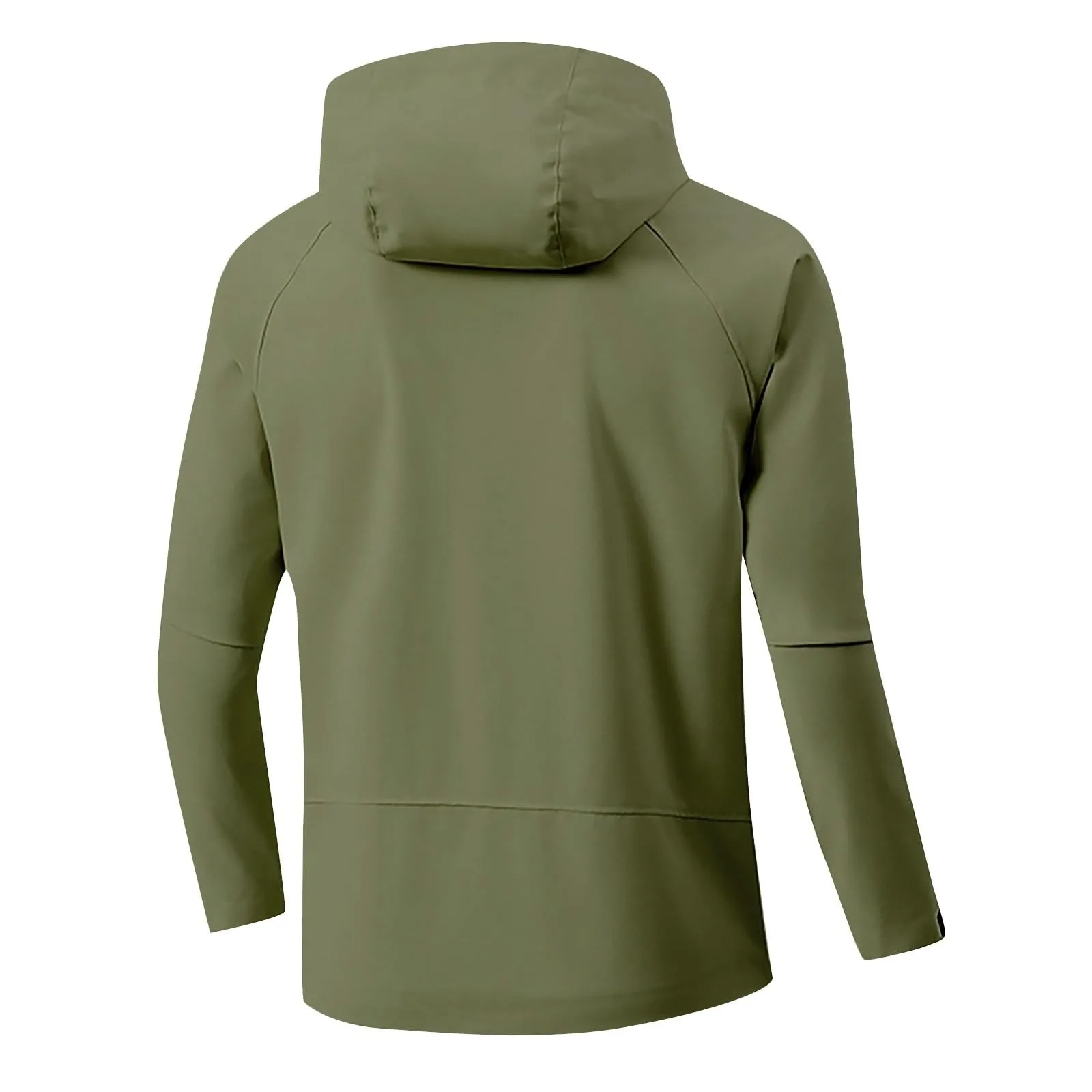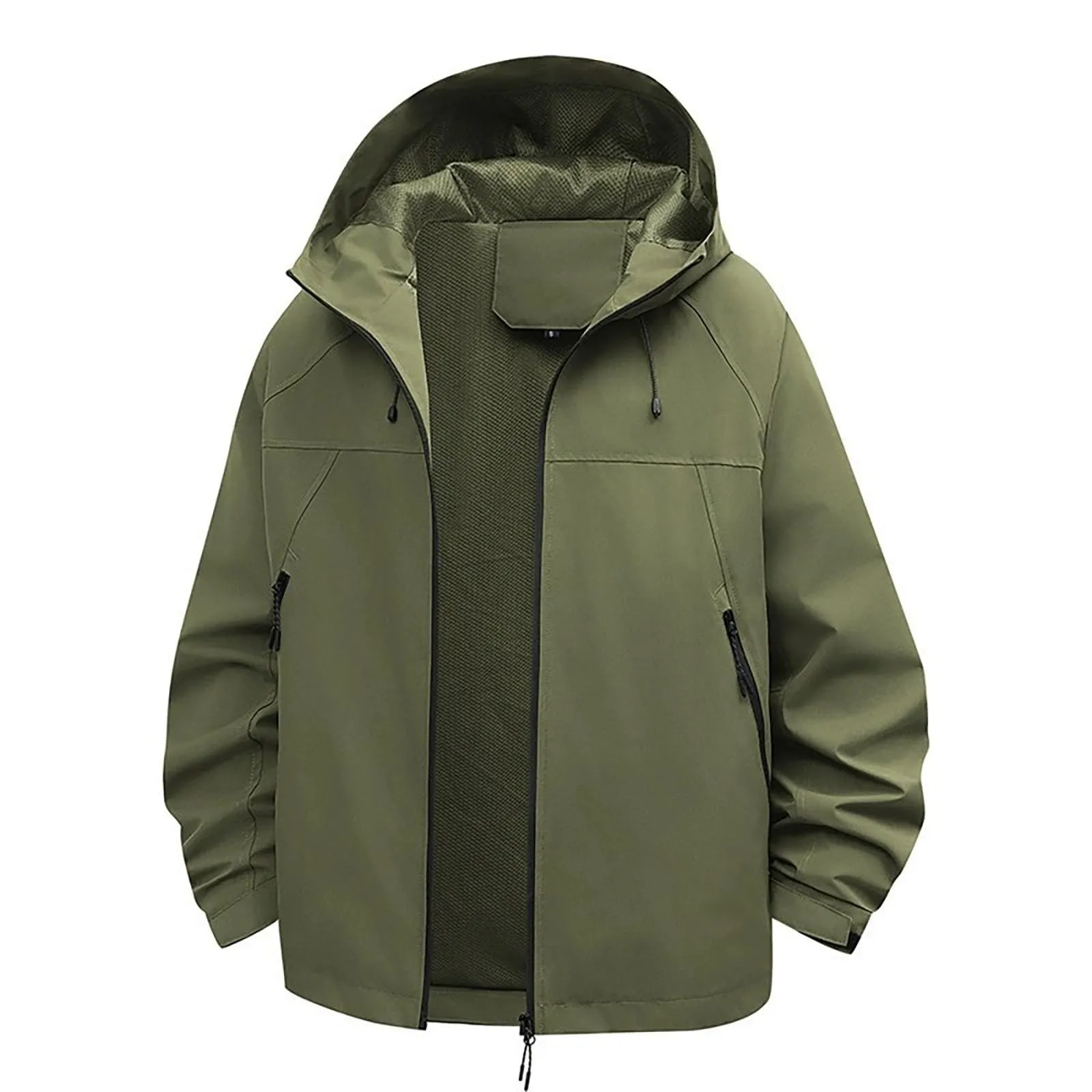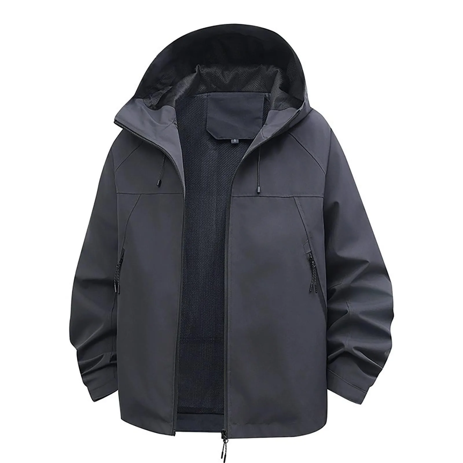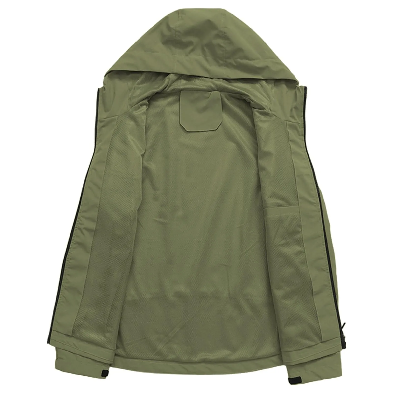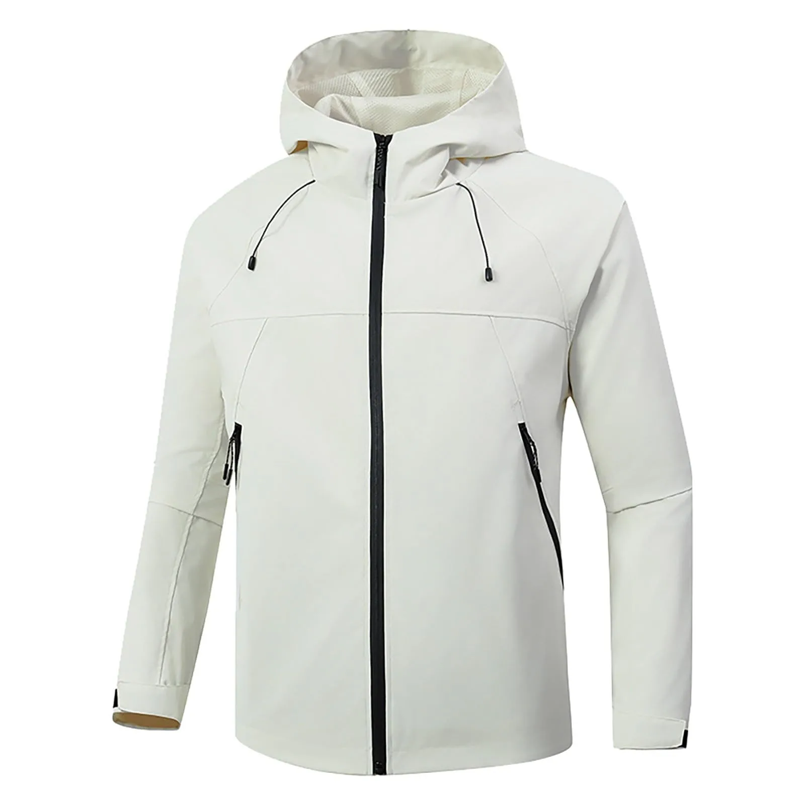 Women Casual Zipper Hooded Jacket Solid Color Breathable Windproof Waterproof Thin Jacket Outdoor Camping Mountaineering Clothin