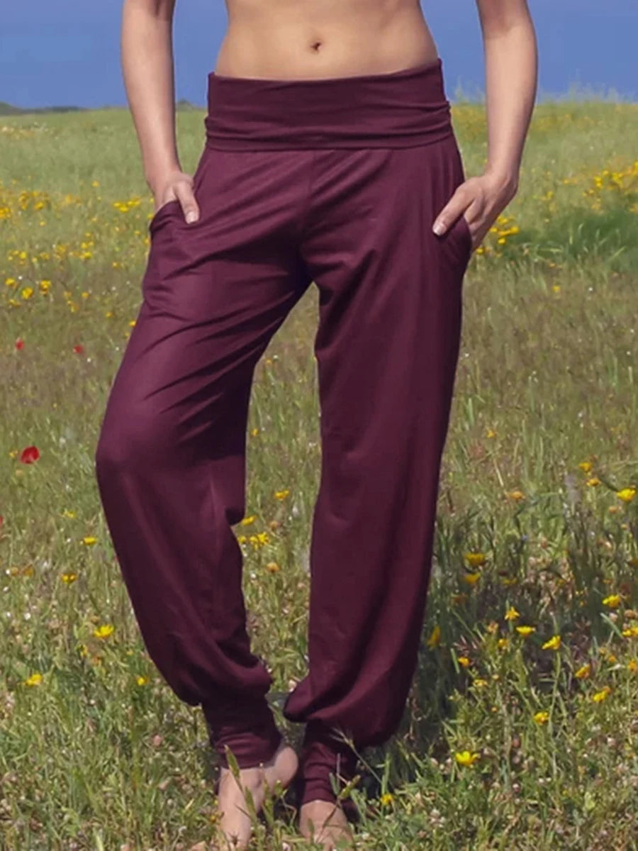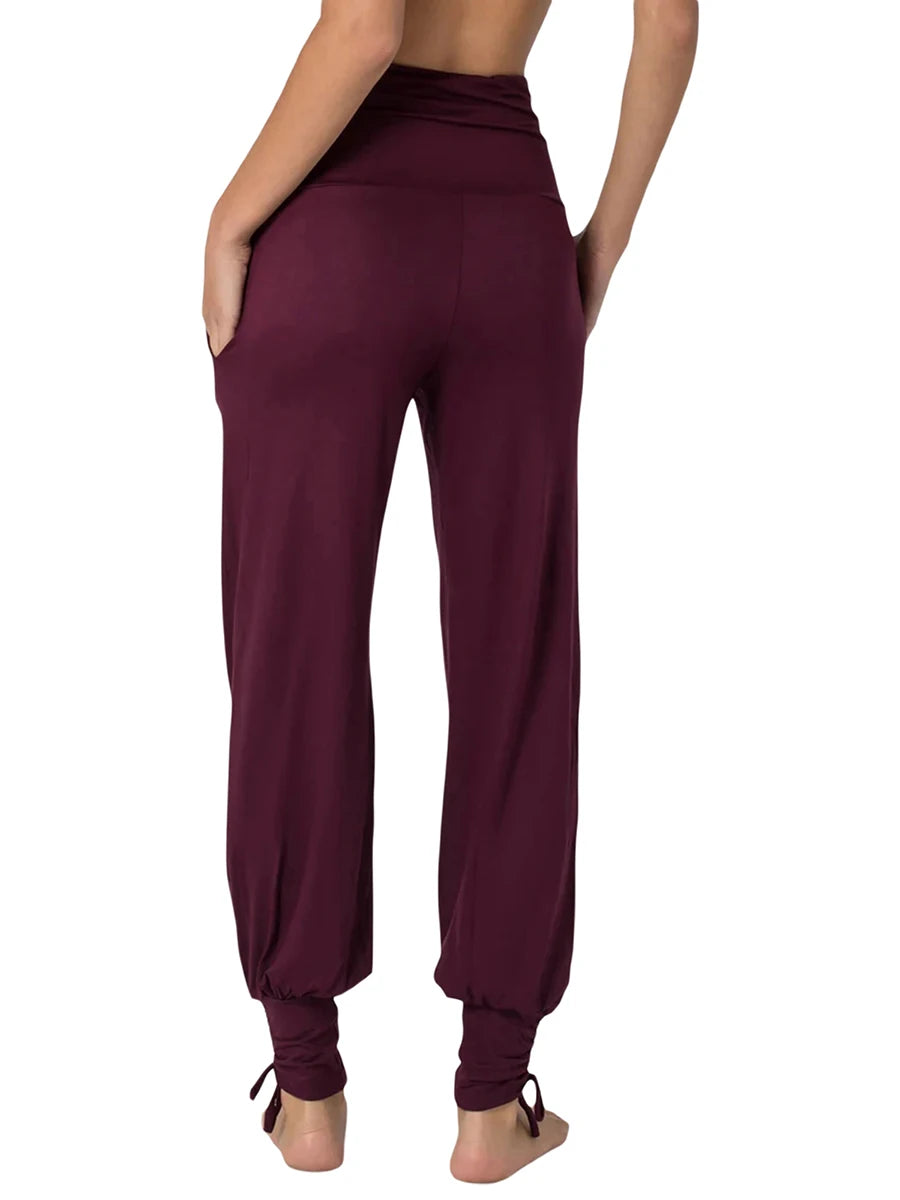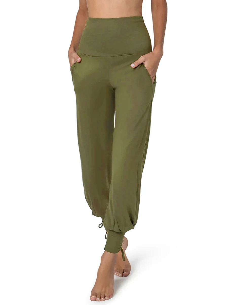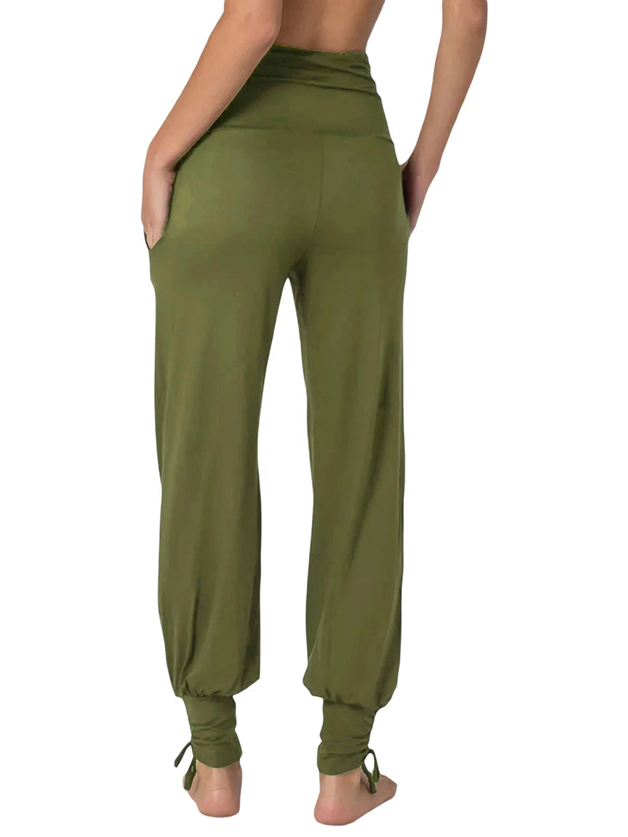 Women's Yoga Pants Loose Solid Color Elastic Waist Casual Harem Pants with Pockets for Summer Spring Fall
