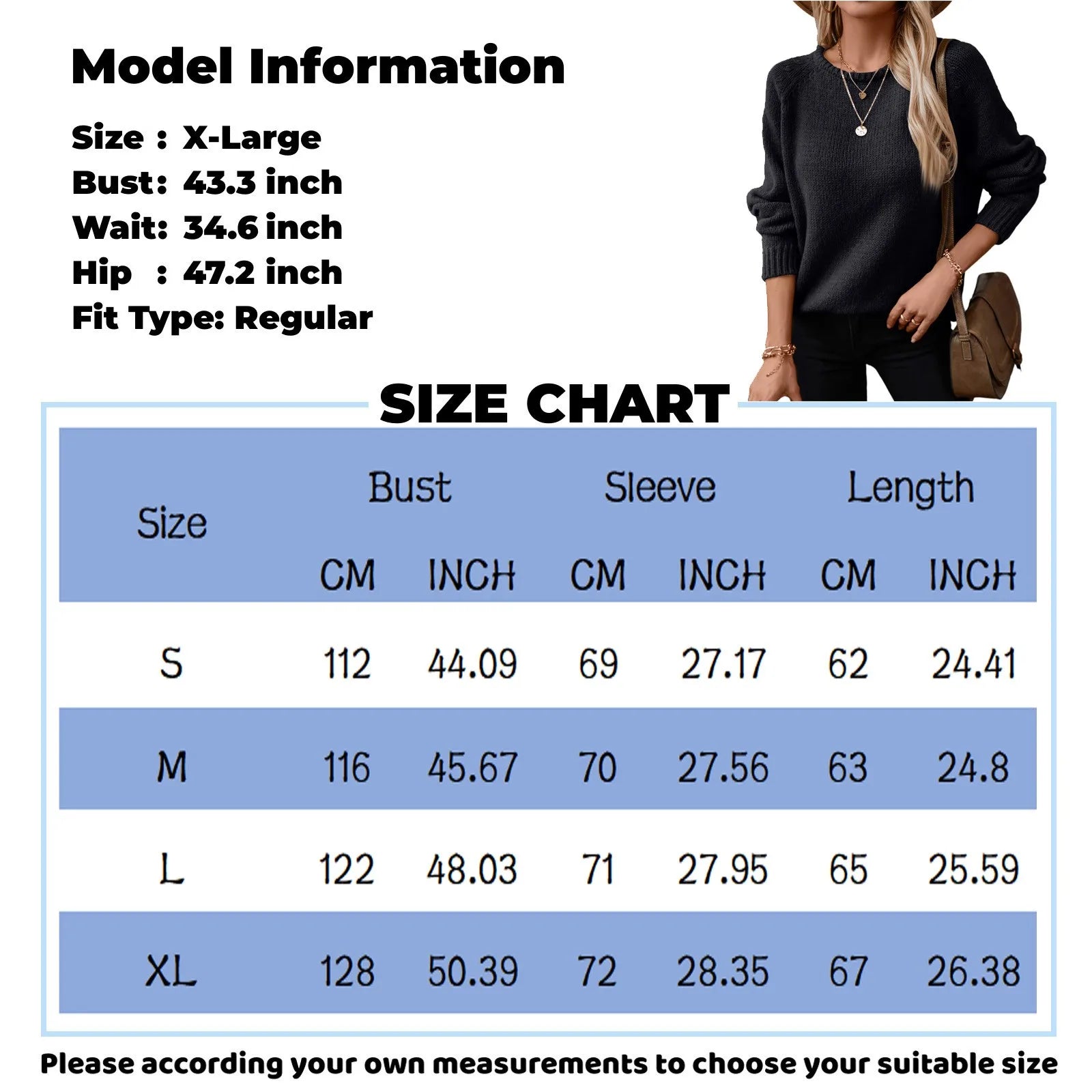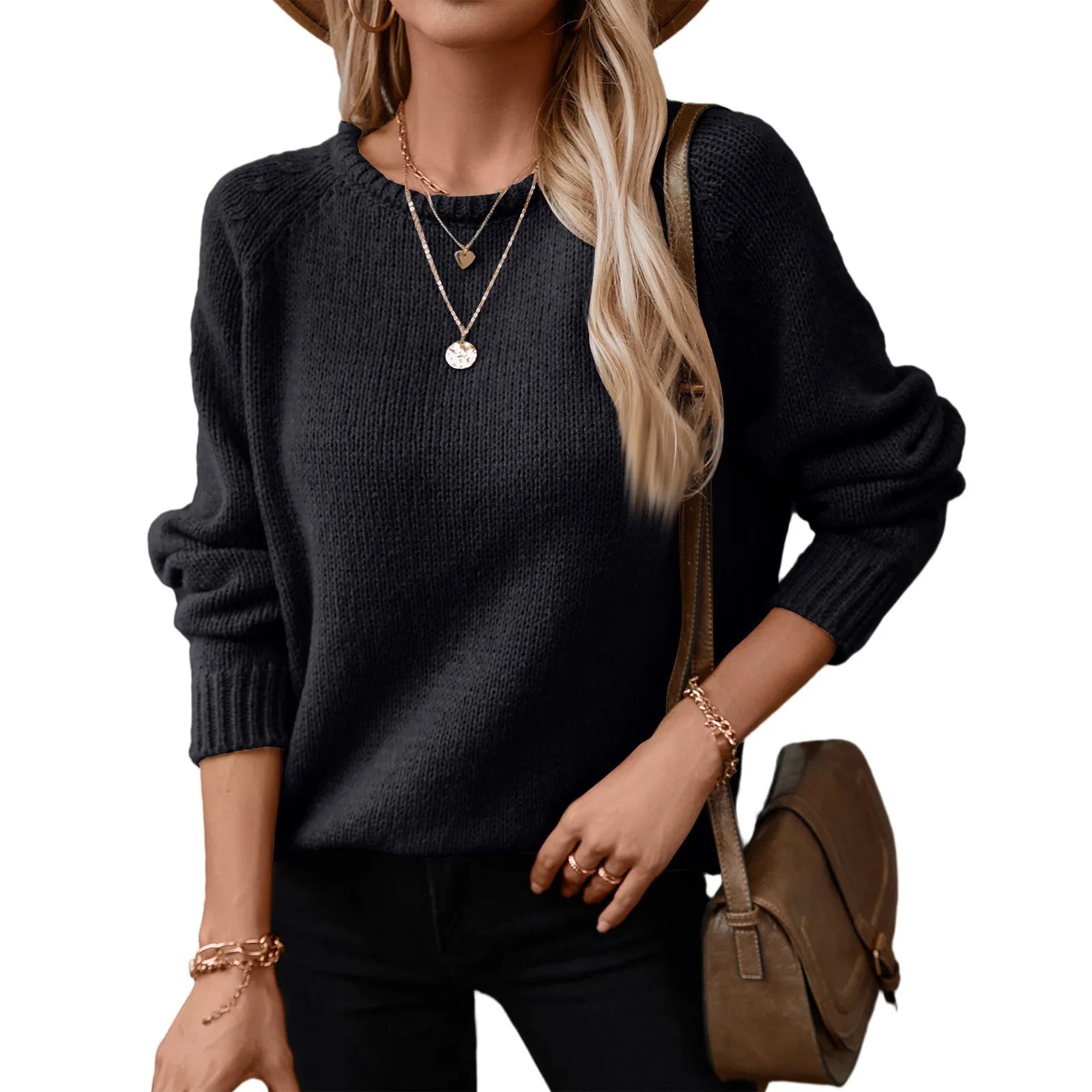 Women's Fashion Casual Round Neck Solid Color Rolled Hem Pullover Long Sleeve Loose Sweater