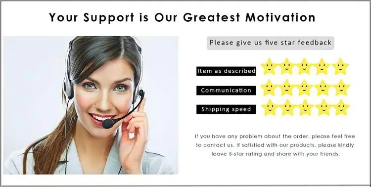 We sincerely invite you to leave Positive Feedback 5-star Detailed Seller Ratings for us if you are satisfied with our product and service.It'll just take you 1 minute.Thank you for your support!