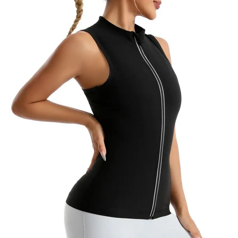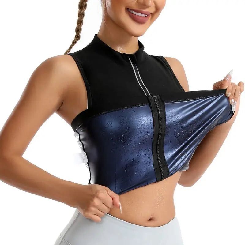 Women's Sauna Vest Zipper Design Body Shaper Heat Trapping Vest Weight Loss Workout Shirt Tank Top