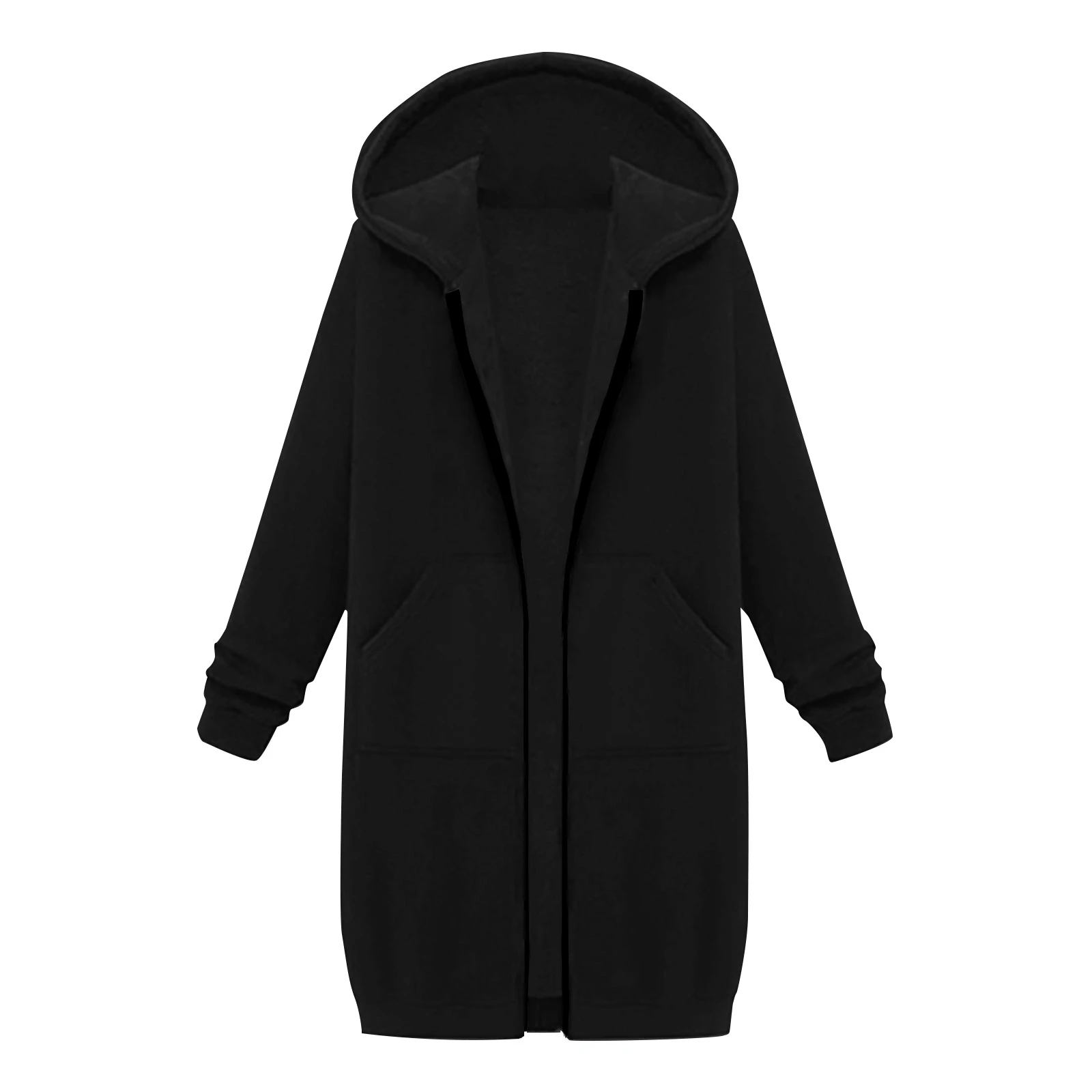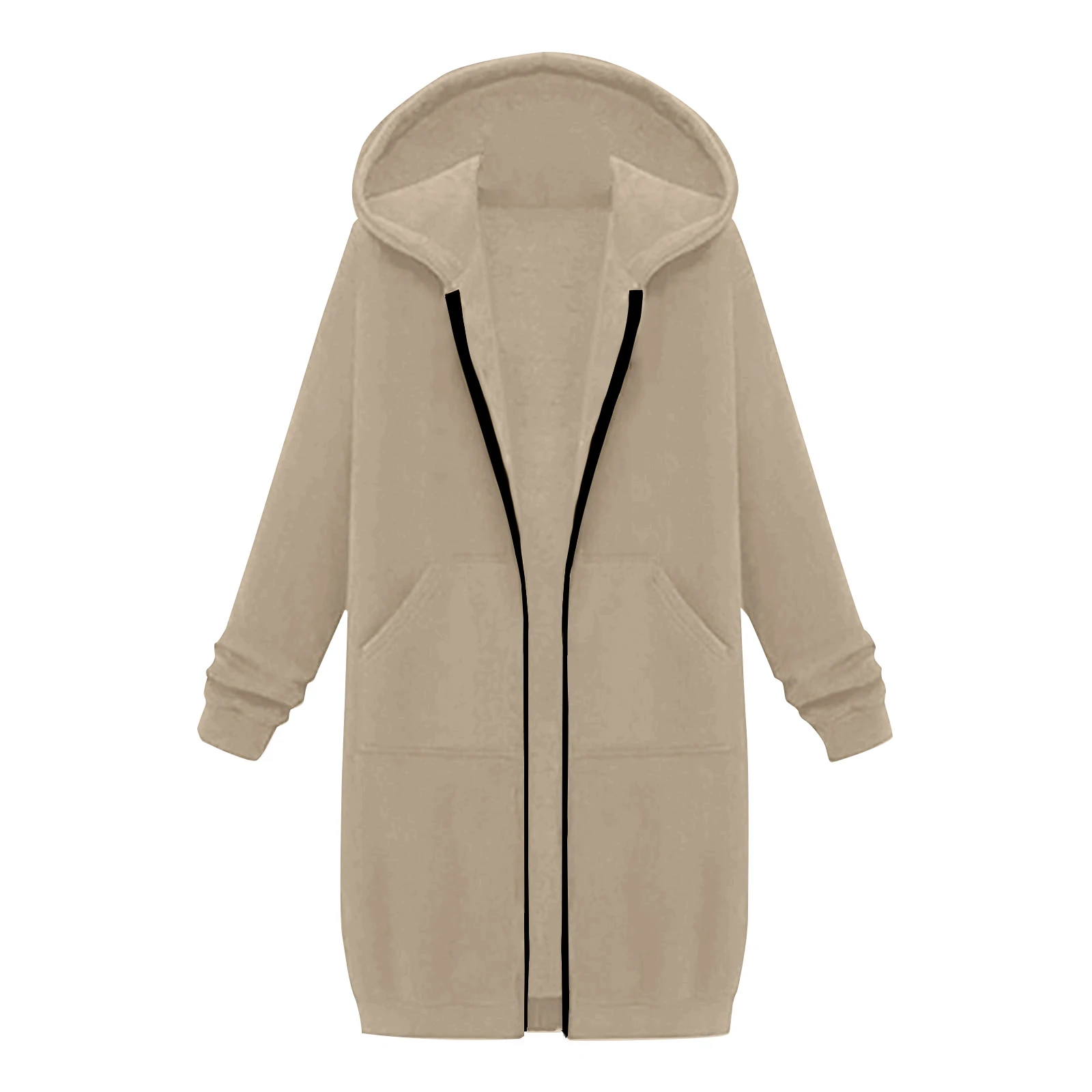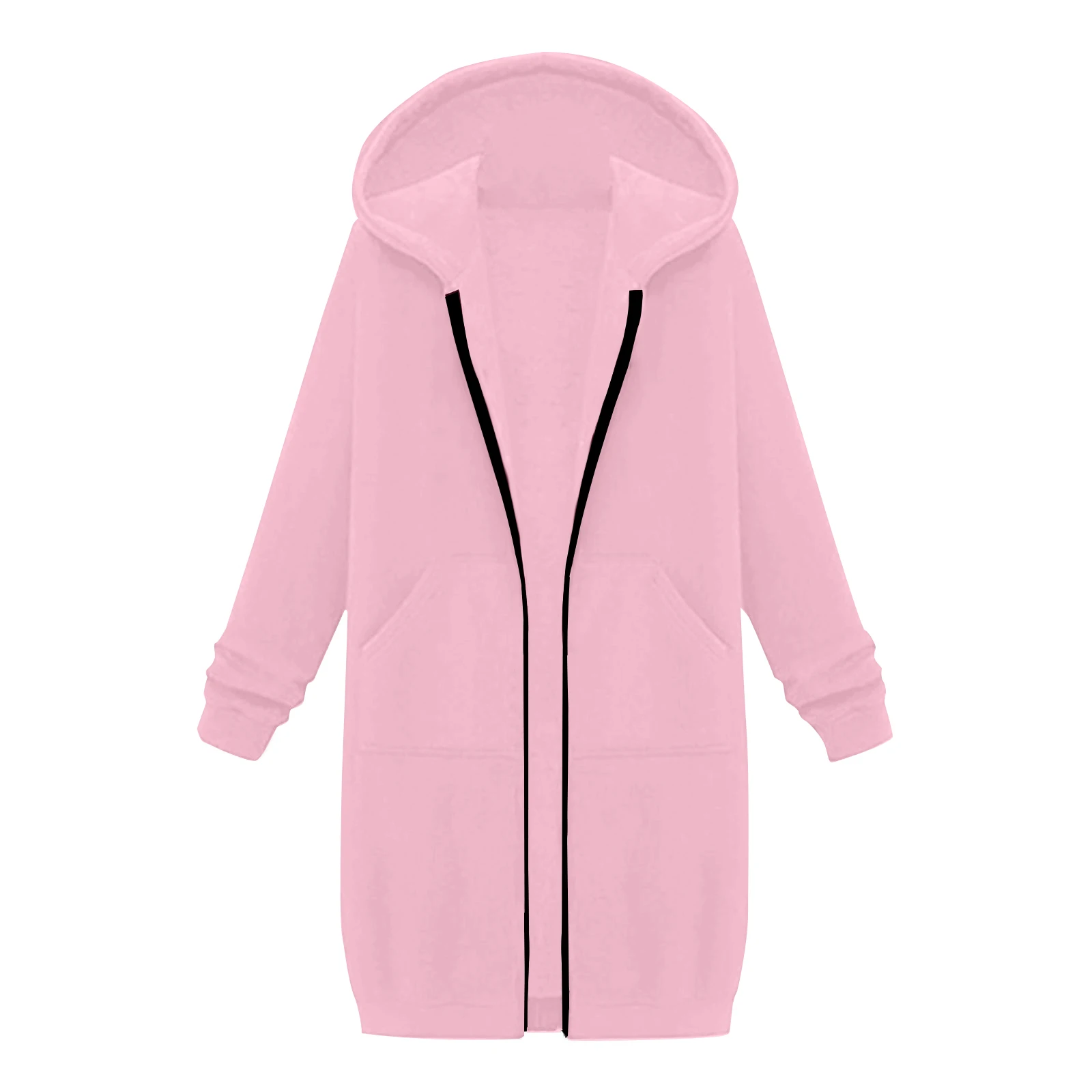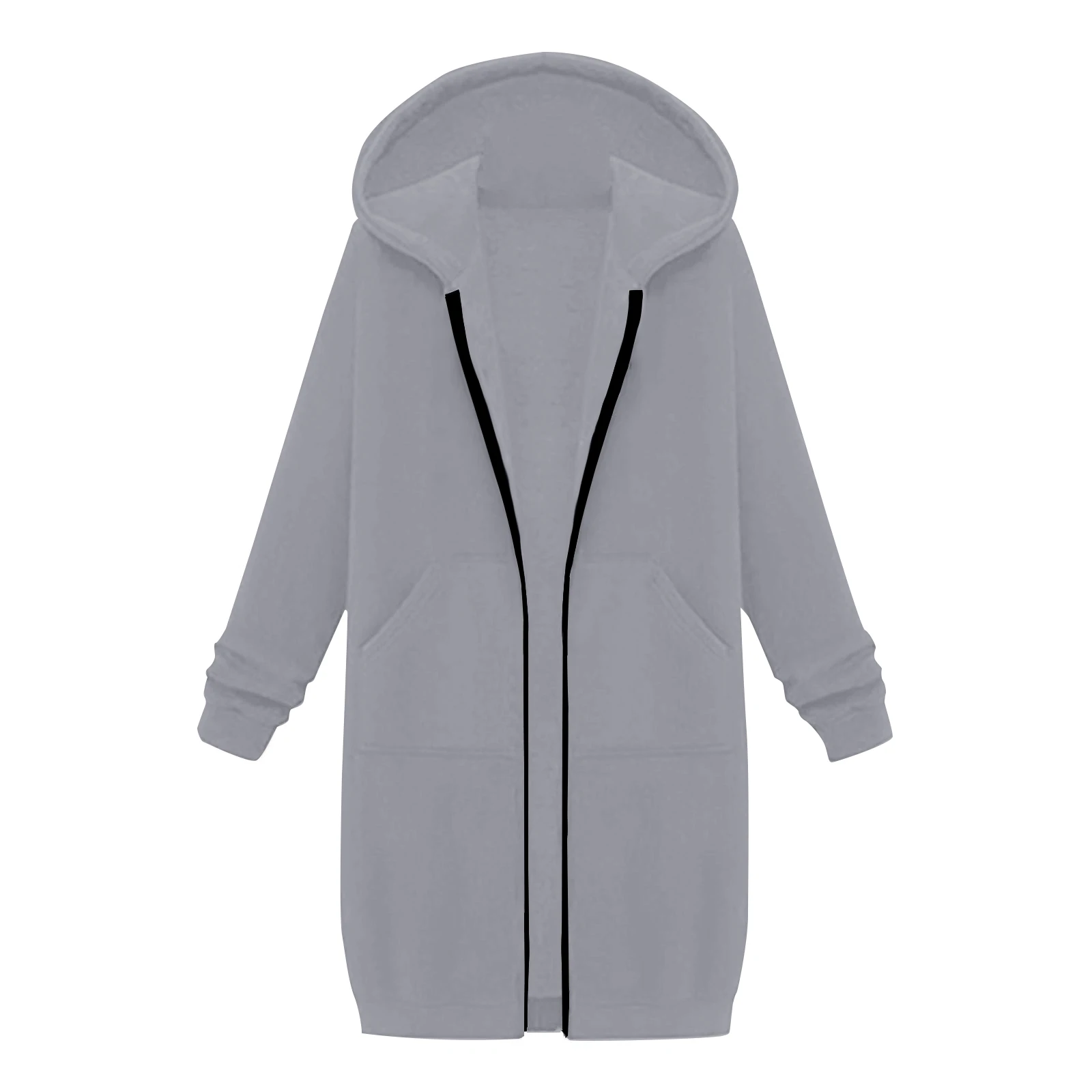 Women's Solid Color Zip Up Hoodies Oversized Long Cardigan Sweatshirts Casual Fashion Long Sleeve Fall Hoodie Coat