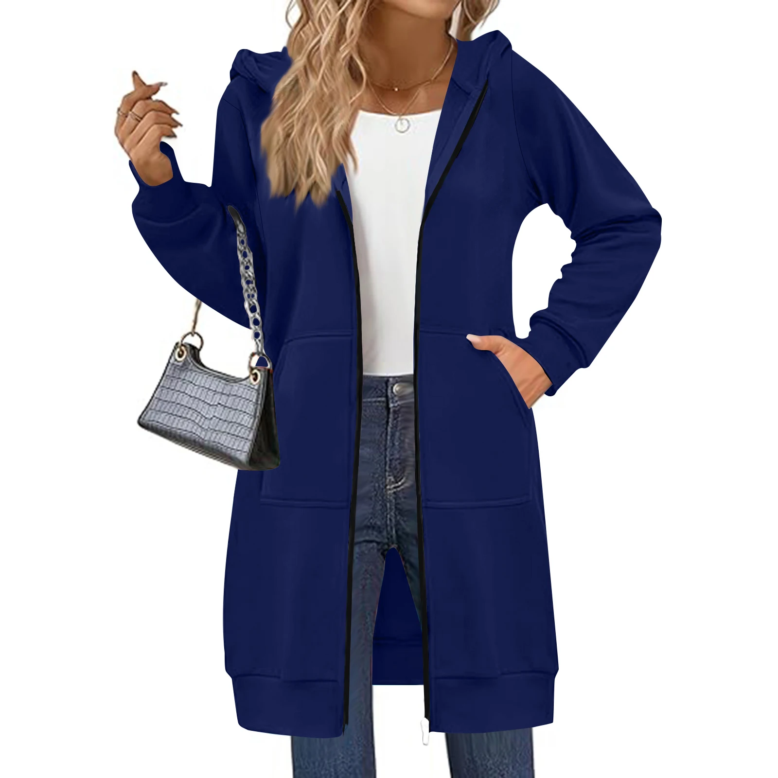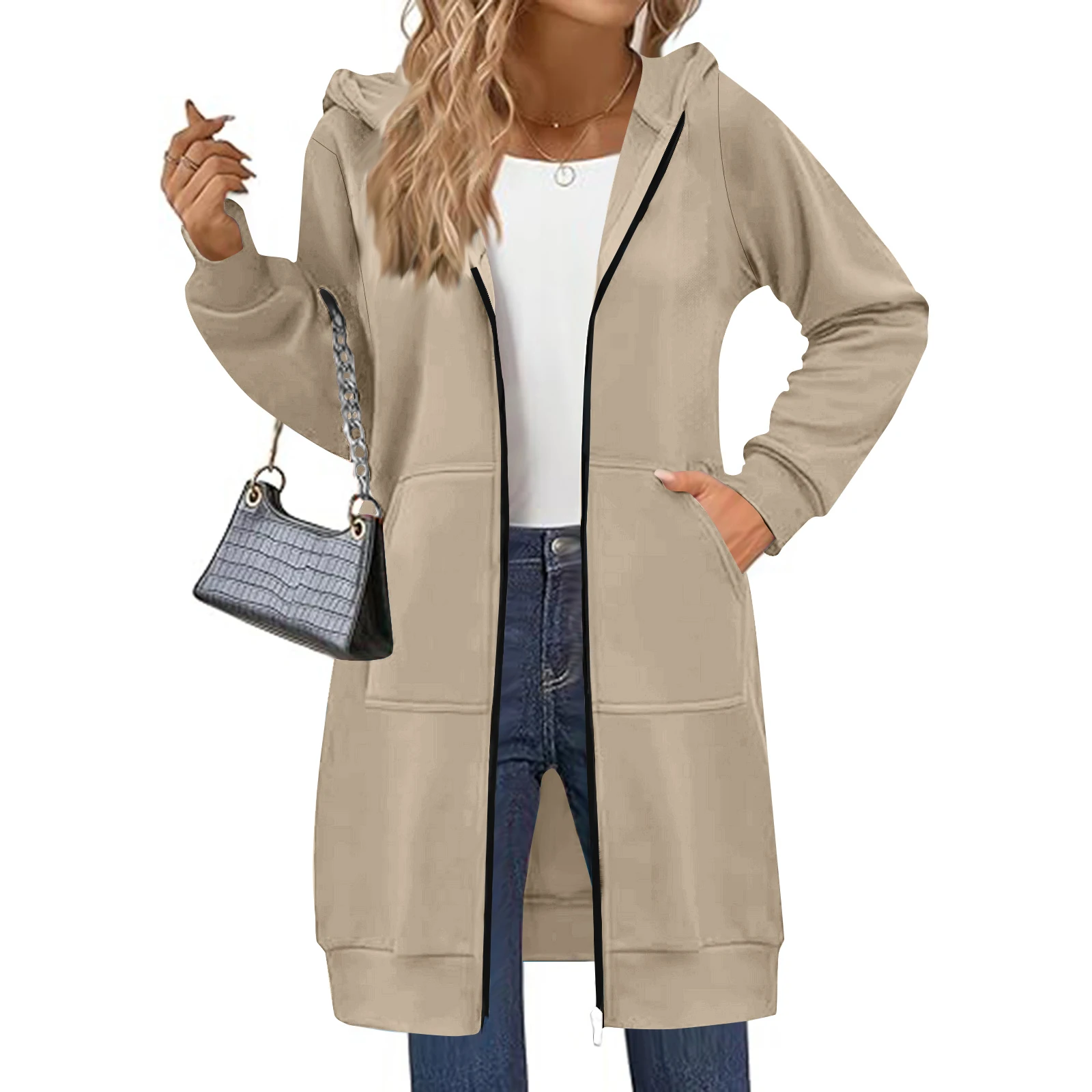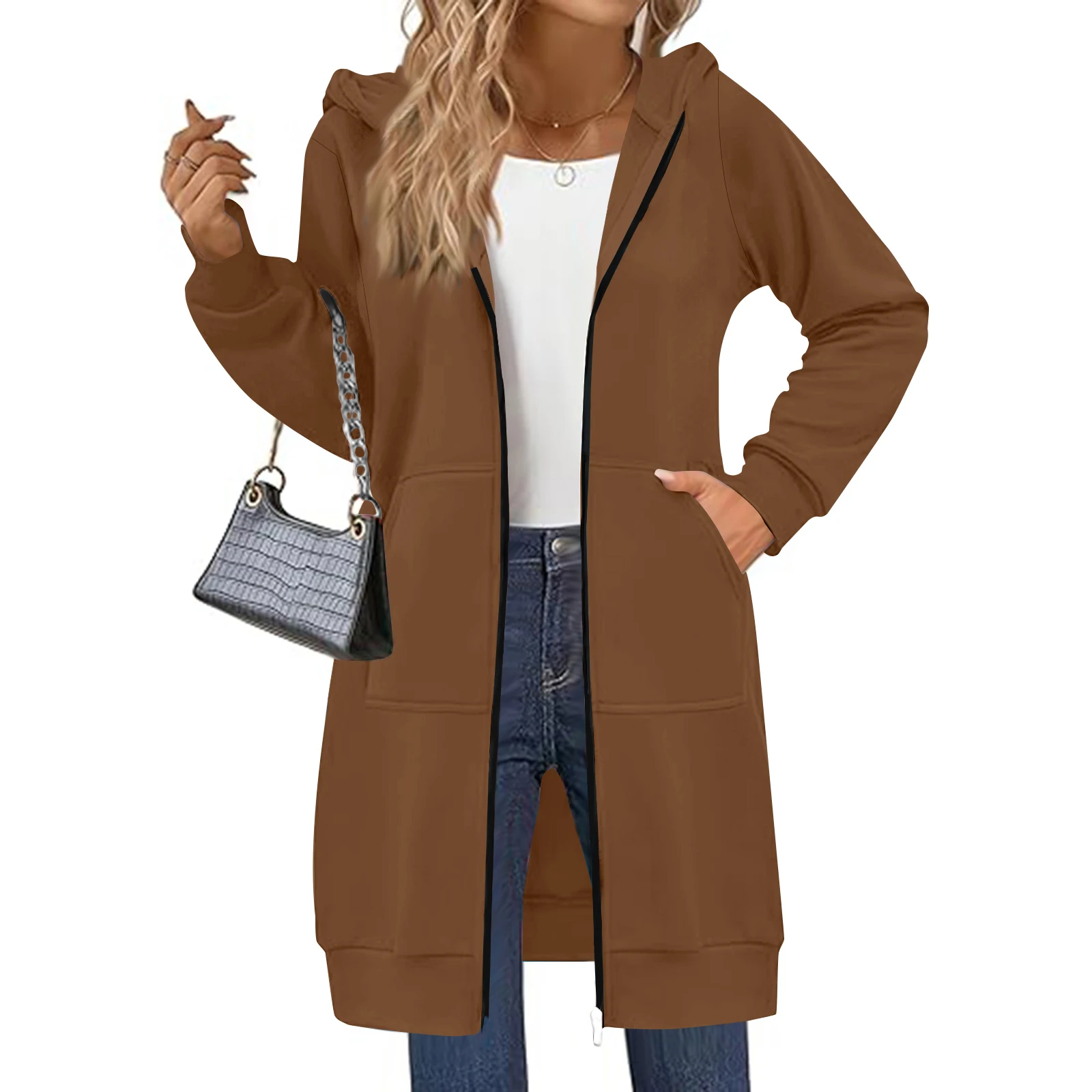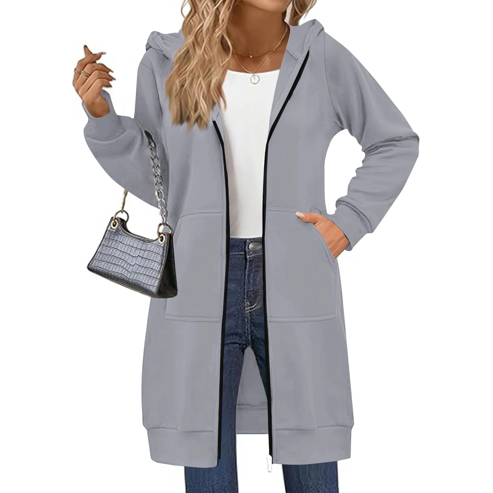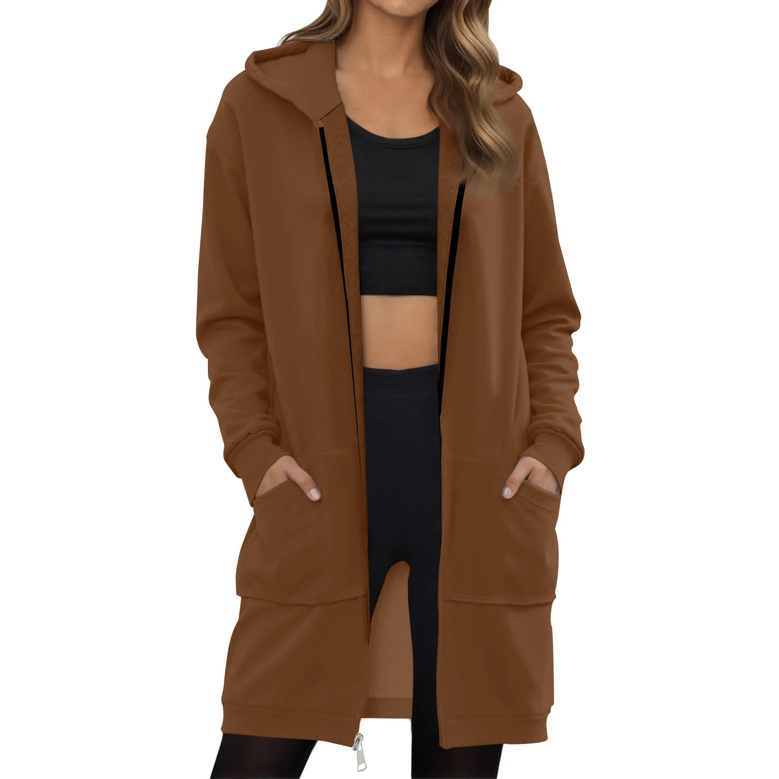 Women's Solid Color Zip Up Hoodies Oversized Long Cardigan Sweatshirts Casual Fashion Long Sleeve Fall Hoodie Coat